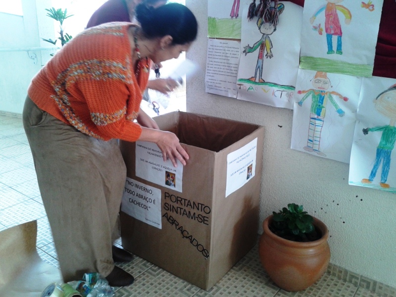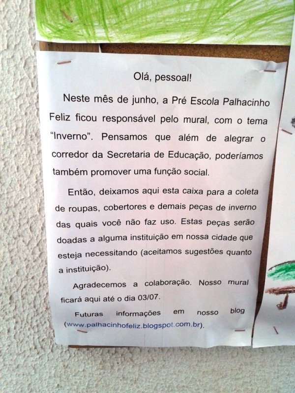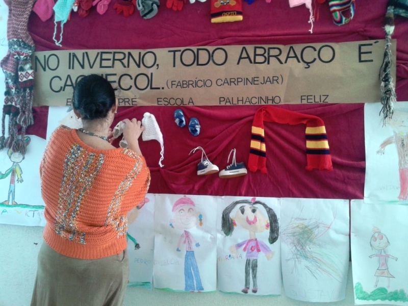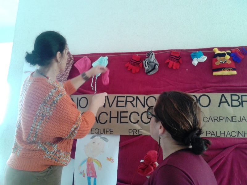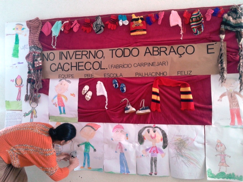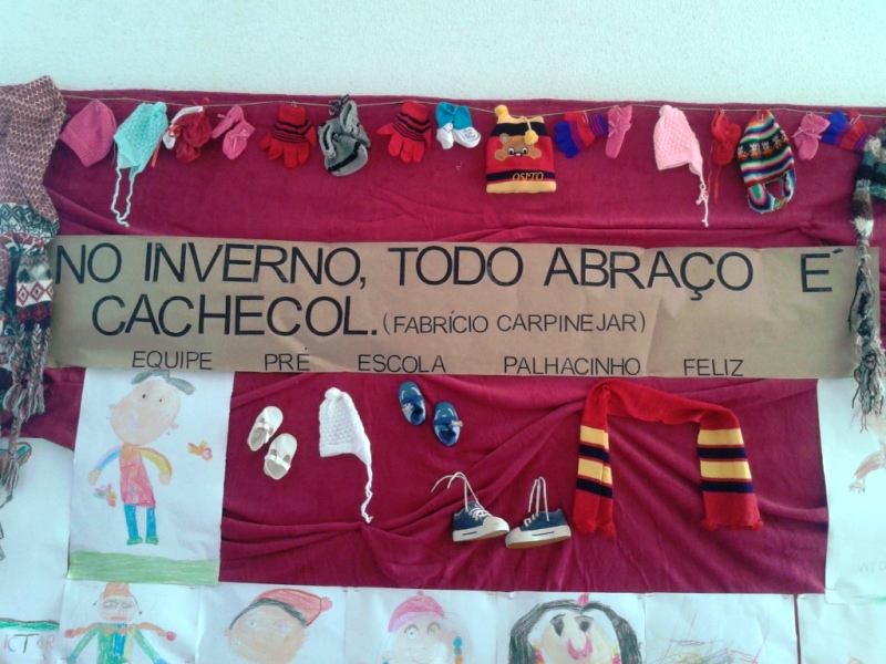 Além da montagem do mural, a Pré-Escola está realizando uma Campanha do Agasalho, que será concluída no dia 03 de julho. As peças arrecadadas serão doadas para uma instituição de Itapoá.