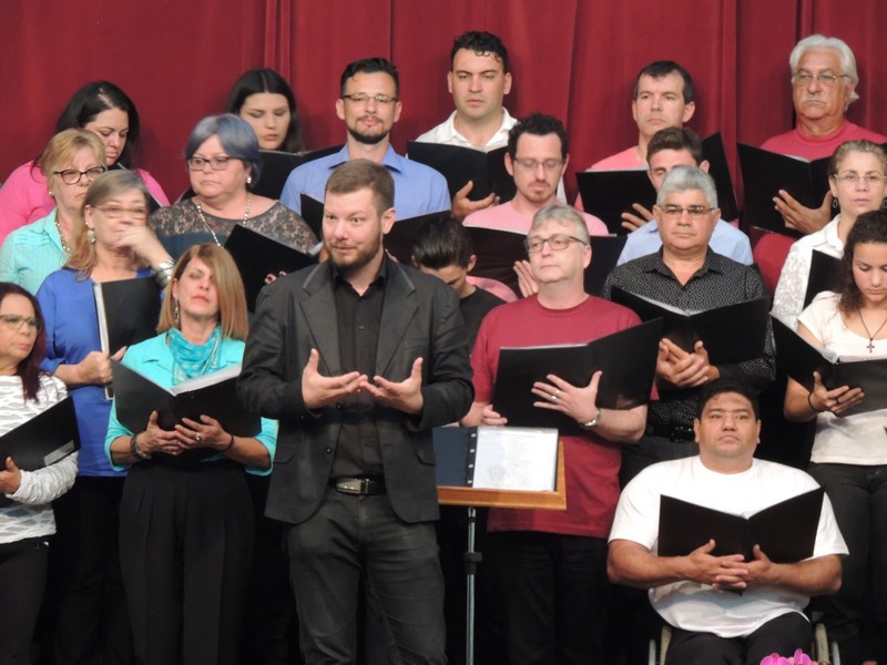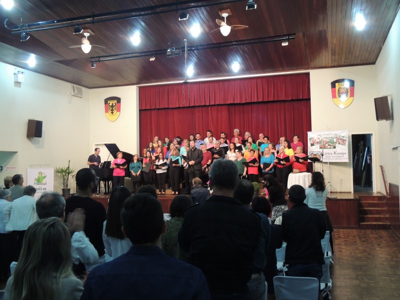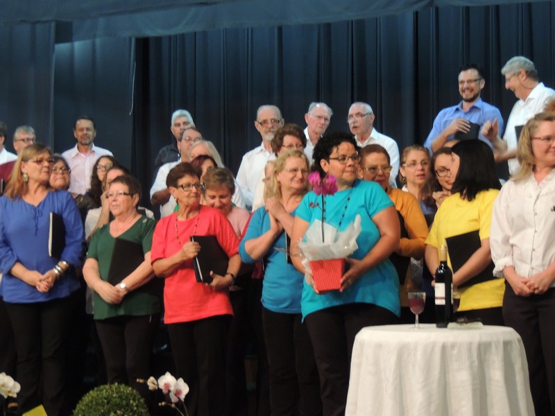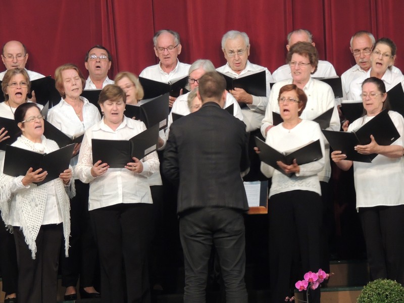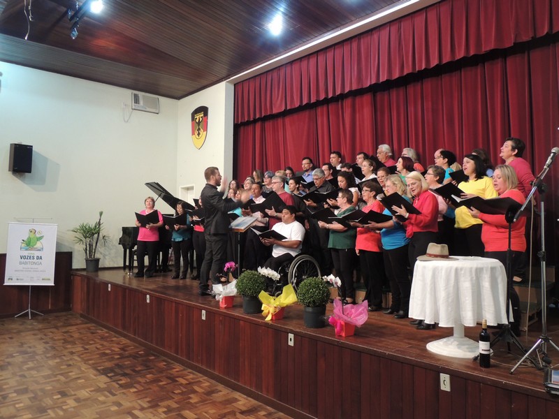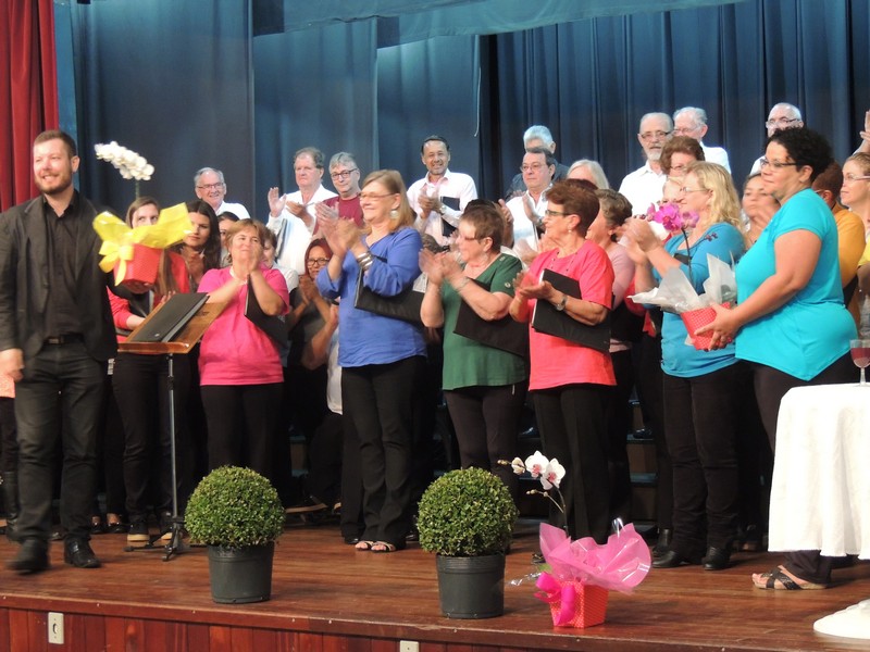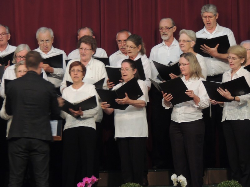 Ao final, Coral da Lírica e Coral Vozes da Babitonga se uniram para as duas últimas canções: “Manhãs do Sul do Mundo” e “Amigos para Sempre”.