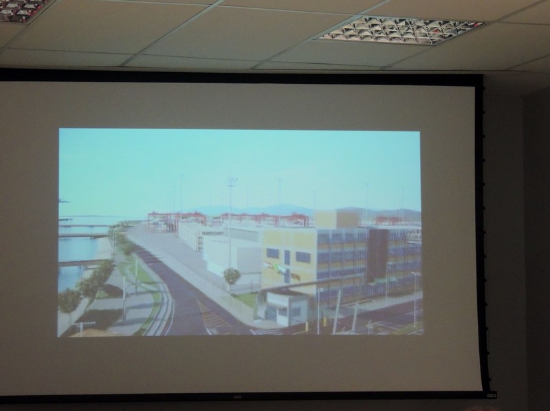 Foi exibida uma projeção em 3D de como o terminal portuário ficará após a conclusão das obras. Veja algumas fotos capturadas dos slides: