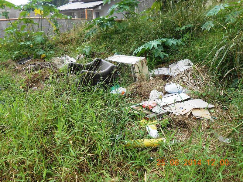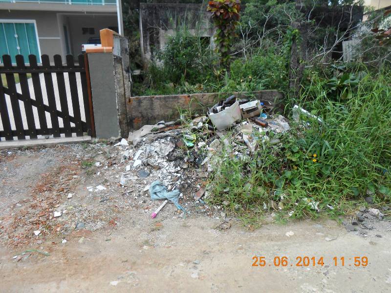 “Isso é uma rua em área residencial. Lixo e mais lixo. Cinco pontos com lixo em um trecho de apenas 300 metros. Proprietários sem noção e educação em higiene, saúde e meio ambiente. Vizinhos, idem. Prefeitura que não fiscaliza e Câmara de Vereadores que não faz cumprir a legislação que cria. Que baita porcaria”, diz Renato Amaro Goldschmidt em uma postagem sua no Facebook realizada no dia 30 de junho (segunda-feira), na qual faz uma denúncia pública com texto e fotos.