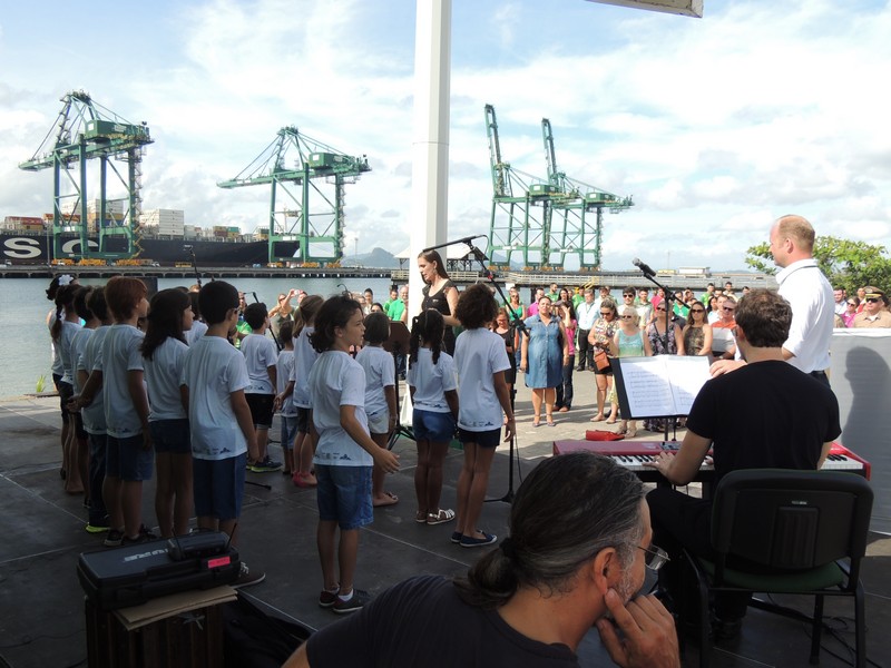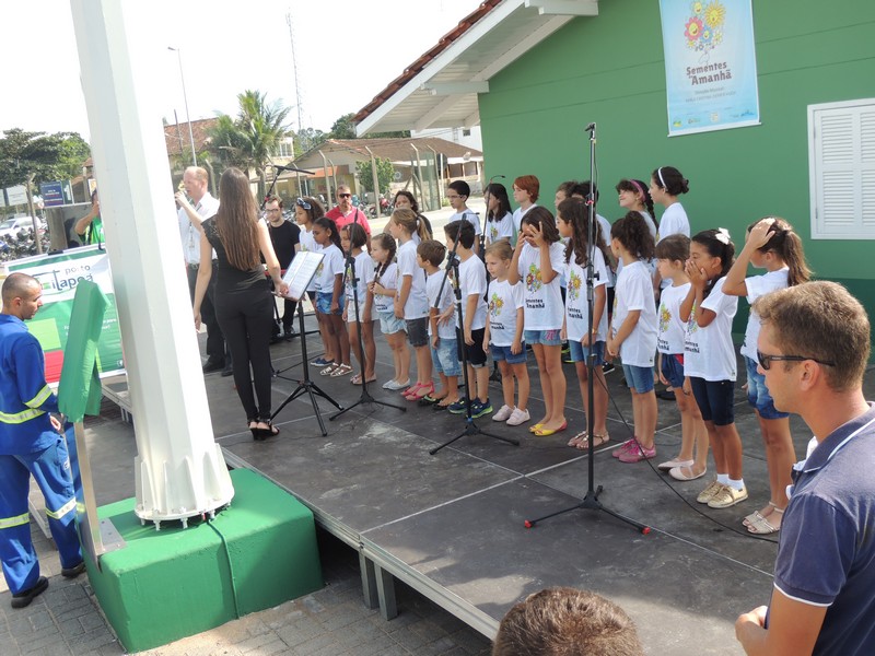 O primeiro hasteamento oficial da Bandeira foi realizado juntamente com a execução do Hino Nacional que ficou por conta do Coral Infantil Sementes do Amanhã, projeto desenvolvido em Itapoá, que conta com o patrocínio do próprio Porto, via Lei Rouanet, de incentivo à Cultura. “As crianças foram as responsáveis pela manifestação cívica e também artística e cultural do evento, que simboliza não apenas o interesse da empresa em desenvolver ações de cunho patriótico, mas de estimular o desenvolvimento de projetos focados no desenvolvimento humano e social a partir da cultura e de valores ligados ao civismo”, explicou o Terminal Portuário em nota publicada na sua fanpage.