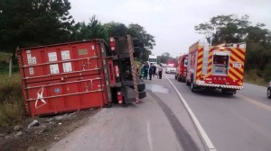 Bombeiros atendem ocorrência de caminhão tombado na Estrada da Jaca