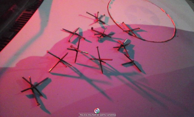 Eles espalharam miguelitos (objeto utilizado para furar pneus) próximo ao Pelotão da PM local para dificultar a ação policial.