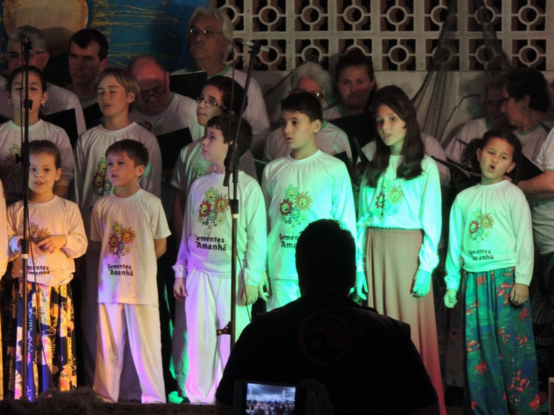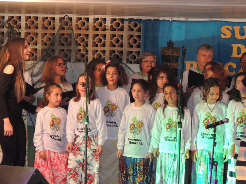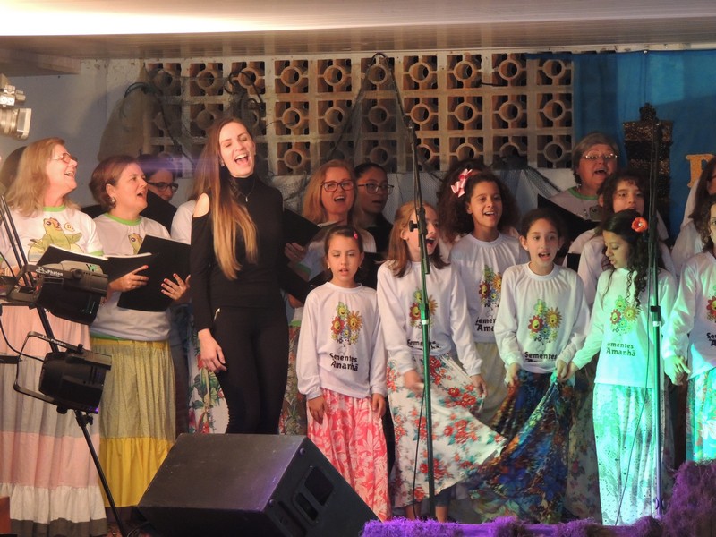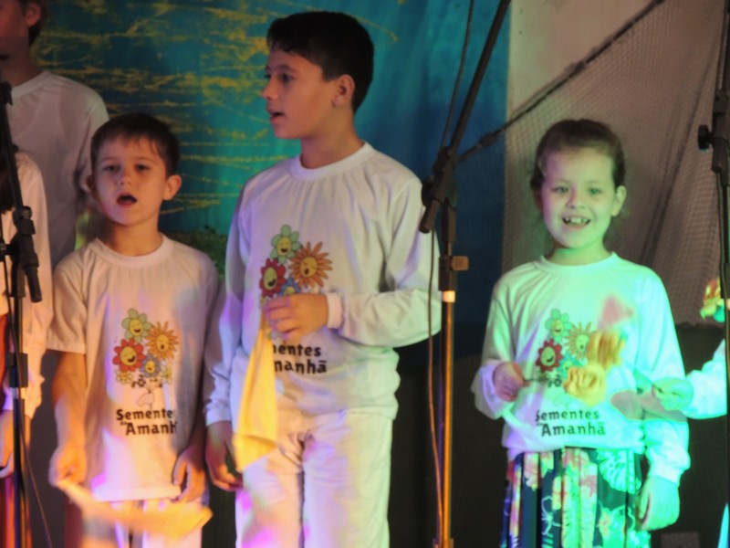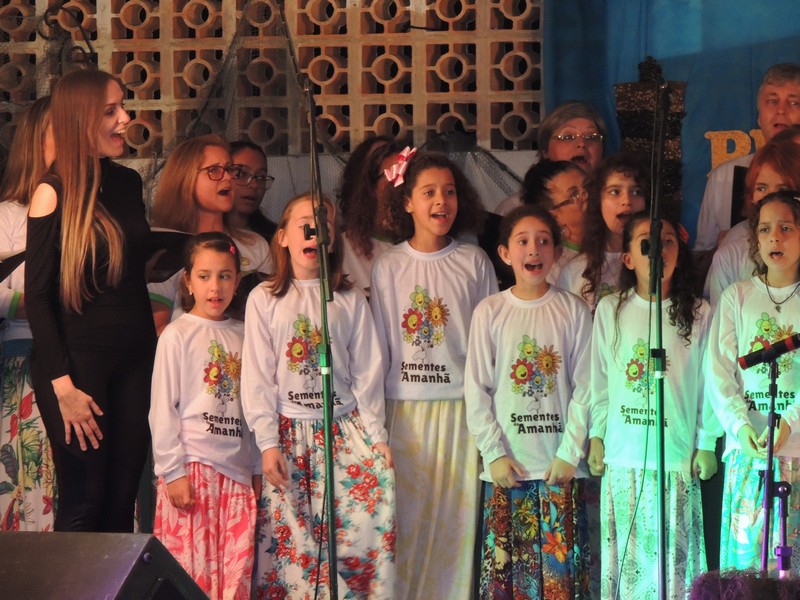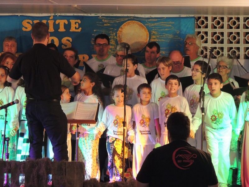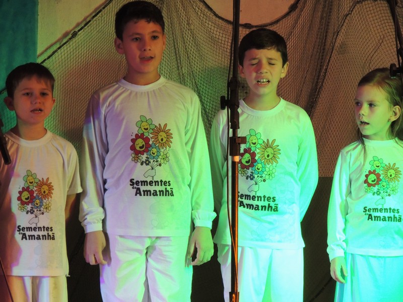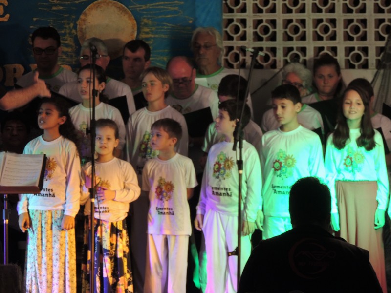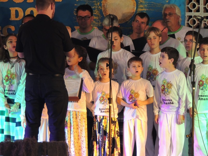 Os primeiros a se apresentar foram os pequenos, sob a direção de Karla Cristina Ziemer. O Coral Sementes do Amanhã mostrou muita desenvoltura e segurança, deixando o público admirado com o que viu. Ao final, Karla agradeceu a presença do público, a todos que patrocinaram o Coro Infantil e, em especial, ao Porto Itapoá, maior patrocinador. Ela adiantou que, no próximo mês de agosto, será aberto um edital para novas vozes infantis que queiram fazer parte do Grupo.