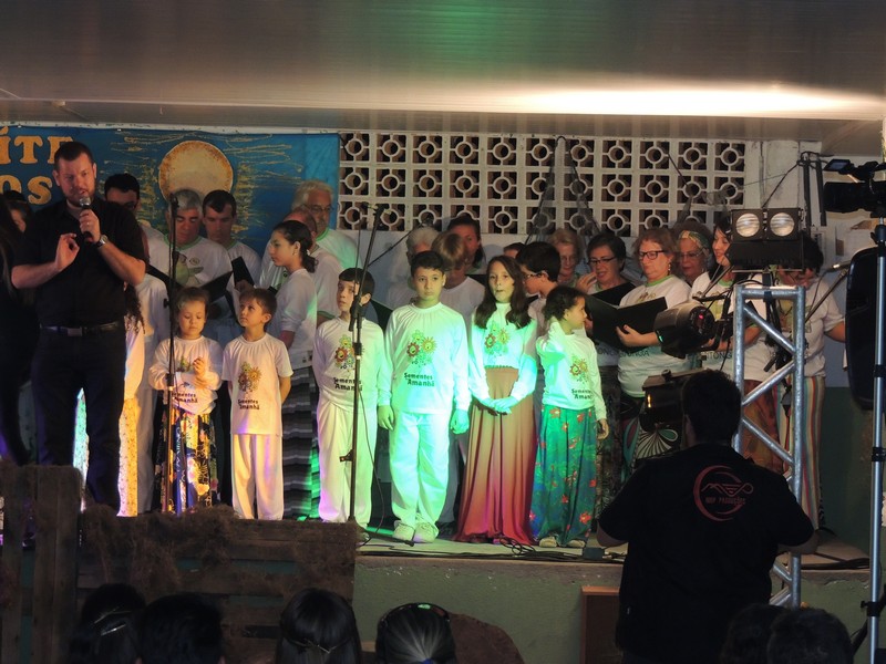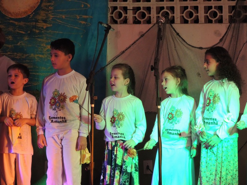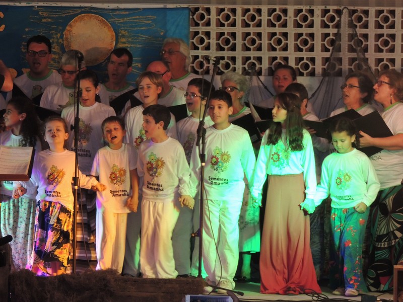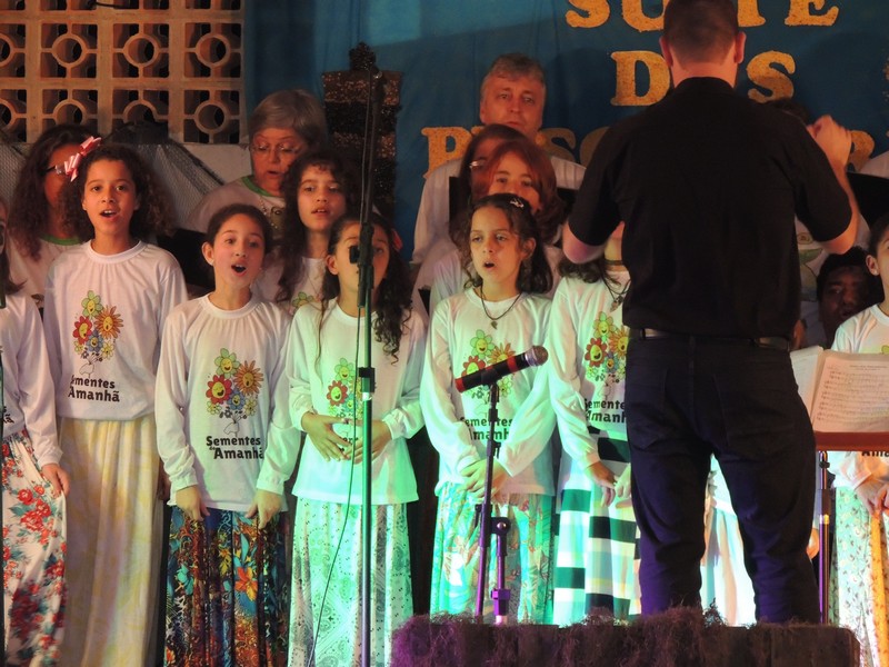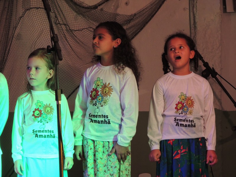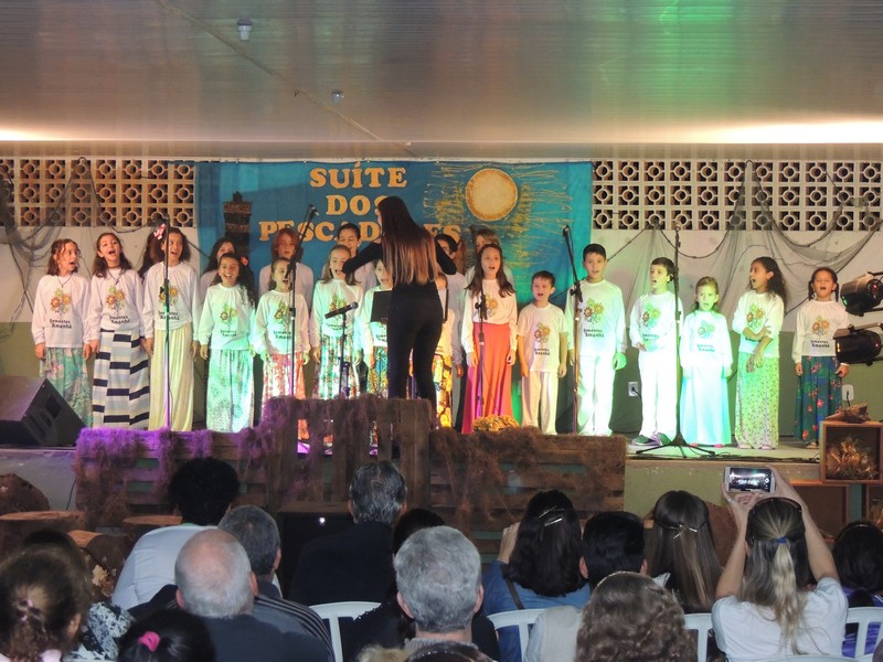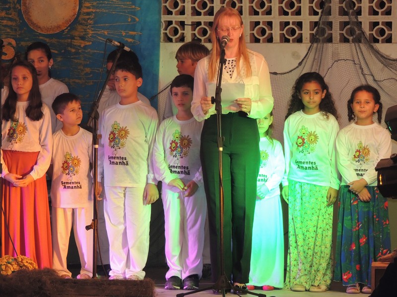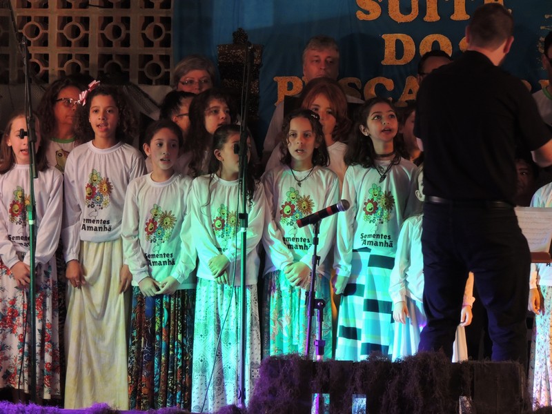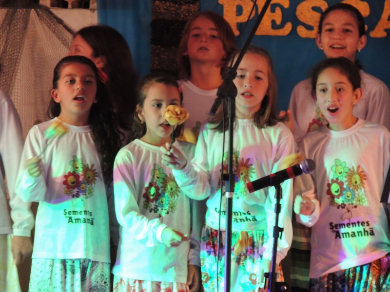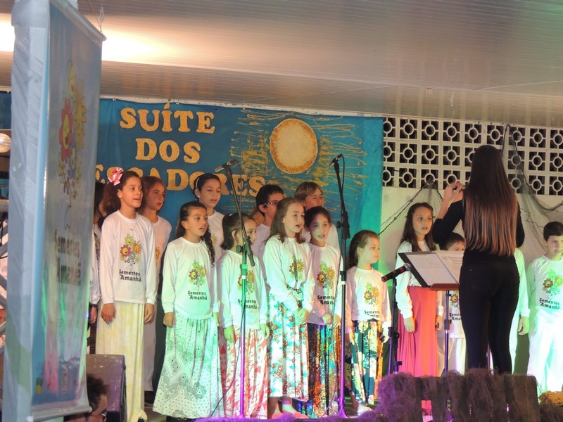Os primeiros a se apresentar foram os pequenos, sob a direção de Karla Cristina Ziemer. O Coral Sementes do Amanhã mostrou muita desenvoltura e segurança, deixando o público admirado com o que viu. Ao final, Karla agradeceu a presença do público, a todos que patrocinaram o Coro Infantil e, em especial, ao Porto Itapoá, maior patrocinador. Ela adiantou que, no próximo mês de agosto, será aberto um edital para novas vozes infantis que queiram fazer parte do Grupo.