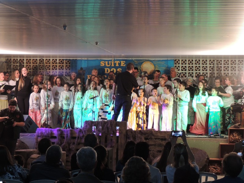 Em seguida, quem se apresentou foi o Coral Vozes da Babitonga, que encerrou o segundo ano e fase de exibições com maestria. Essa foi a 15ª apresentação do Grupo. Por fim, o Coral Sementes do Amanhã também se juntou aos adultos, para fechar a noite com “chave de ouro”. A última canção executada, não à toa, foi Suíte dos Pescadores, de Dorival Caymmi, música inclusive que deu nome à apresentação do Coral Vozes da Babitonga e tem tudo a ver com a realidade de muitos dos moradores do Pontal, cujas famílias vivem ou já viveram da pesca.