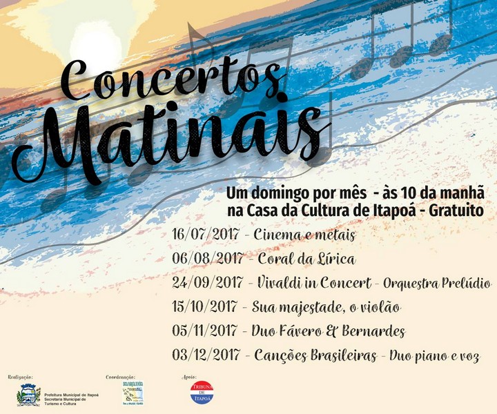 “Queremos agradecer à Prefeitura Municipal de Itapoá, que acreditou neste projeto e se dispôs junto conosco a colocá-lo em execução. Em uma das reuniões pré-eleitorais no bairro de Itapema, a prioridade mais votada naquele dia foi investimento em cultura. O ‘Concertos Matinais’ é uma prova de que a palavra está sendo cumprida”, conclui Nena.