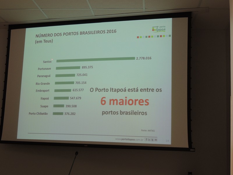 Hoje, segundo apresentado por Alberto Machado, Itapoá já é o sexto maior complexo portuário de contêineres do Brasil, atrás apenas dos de Santos, Portonave (Navegantes), Paranaguá, Rio Grande e Embraport (que também fica em Santos). No estado catarinense, o Porto Itapoá é o que mais cresce em participação de mercado. A previsão do Terminal é que até março de 2018, seja concluída a primeira etapa de sua ampliação, o que aumentaria ainda mais sua capacidade.