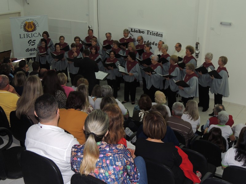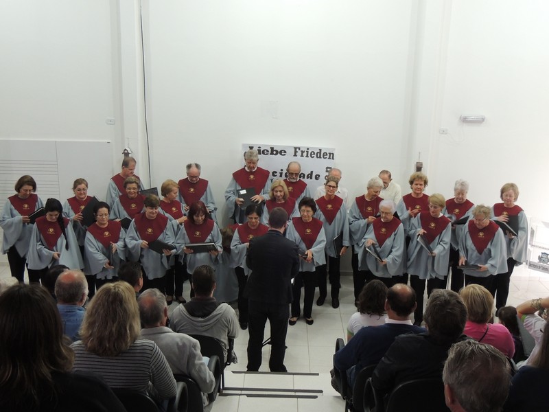Foram executadas diversas canções em arranjo coral na língua alemã, latim e português. Um grande momento do concerto foi a interação do público com a música “Komm trink und lach am Rhein” (venha, beba e divirta-se/ ria conosco às margens do Rio Reno), qual conta com um “schunkllied”, ocasião em que o público balança de um lado para o outro no ritmo da música, segunido a tradição alemã. O belo espetáculo resultou em aplausos de pé por parte do público.