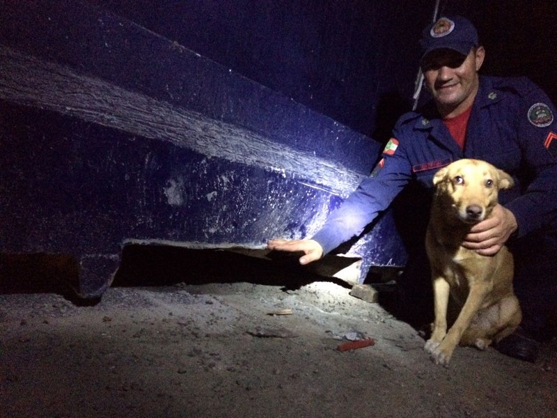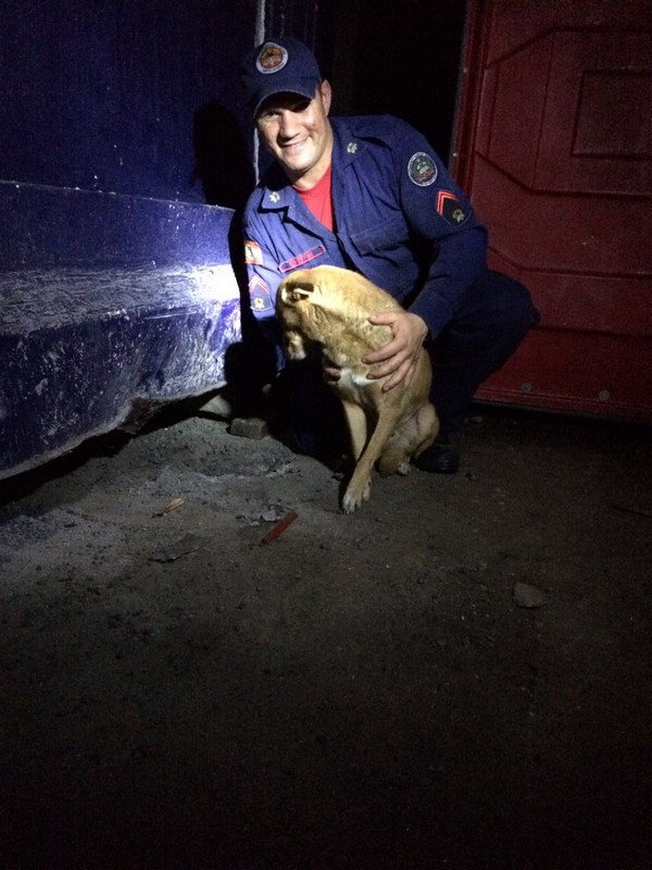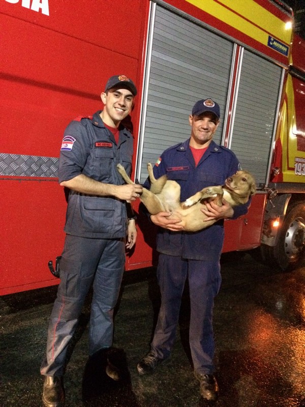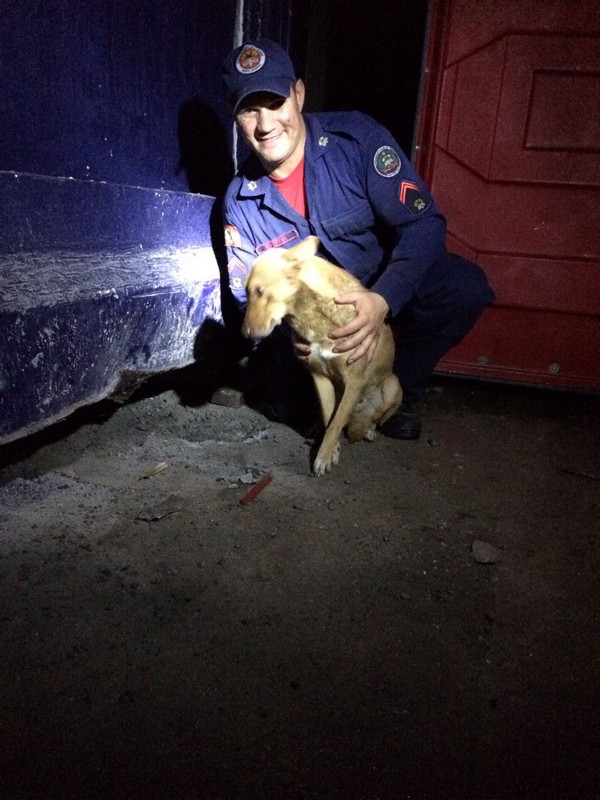 Bombeiros de Itapoá resgatam cão em perigo na noite desse sábado, dia 19 de agosto