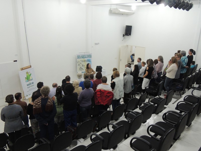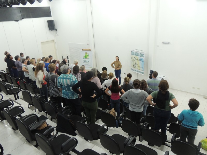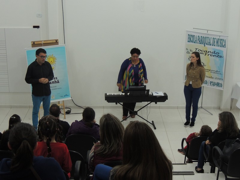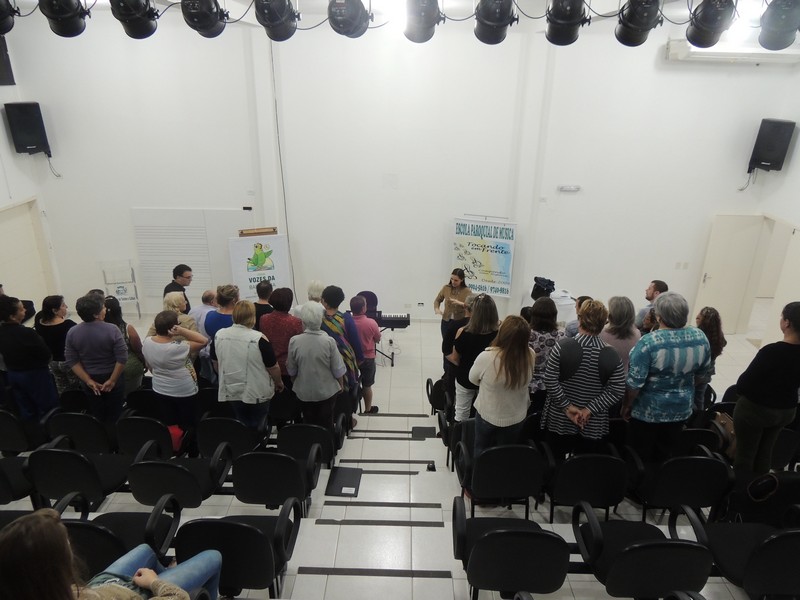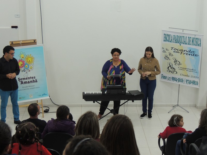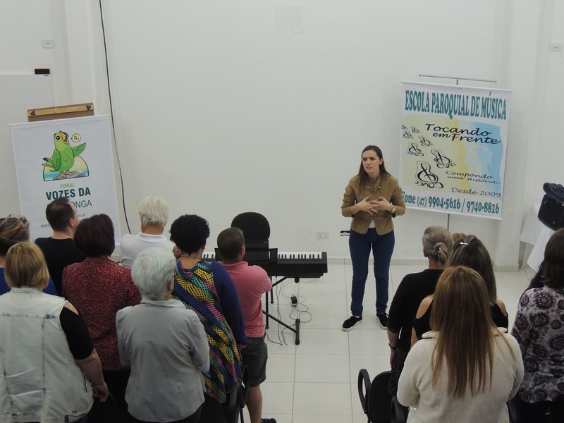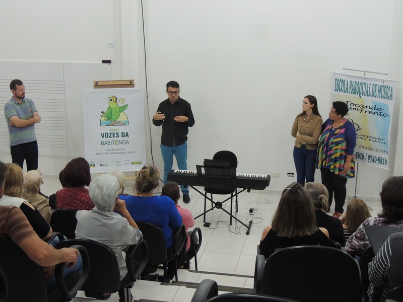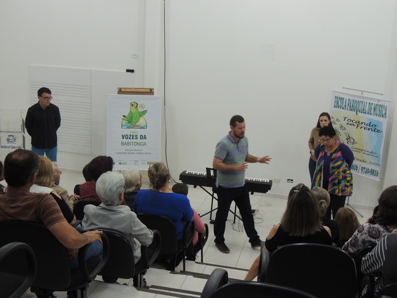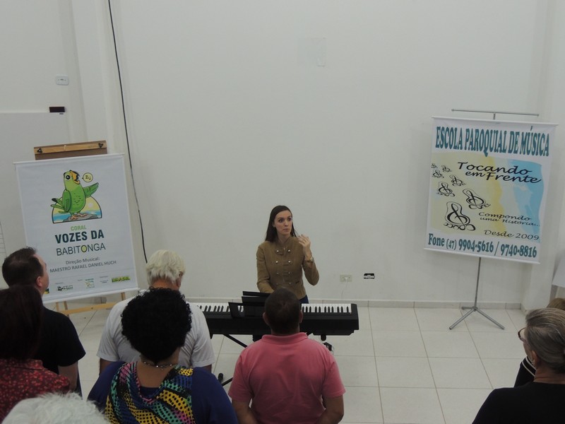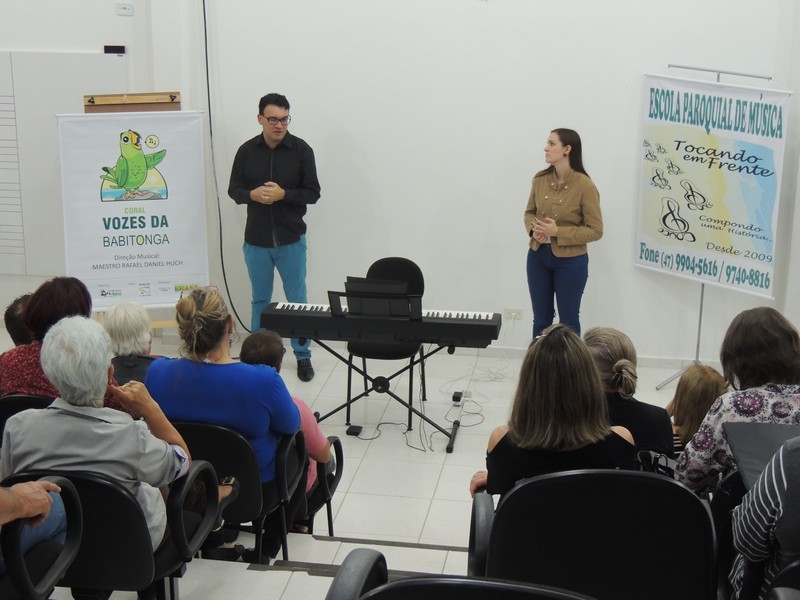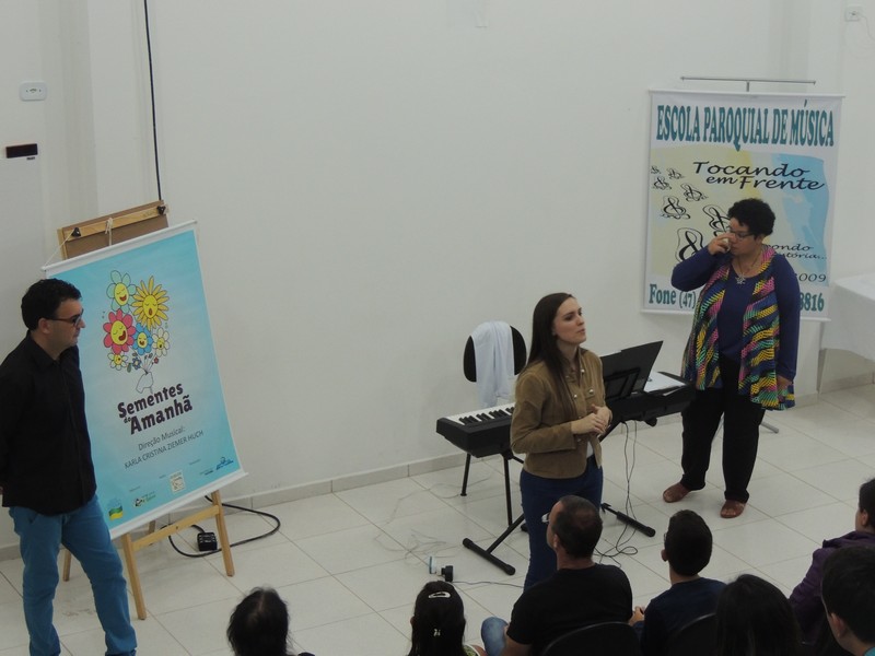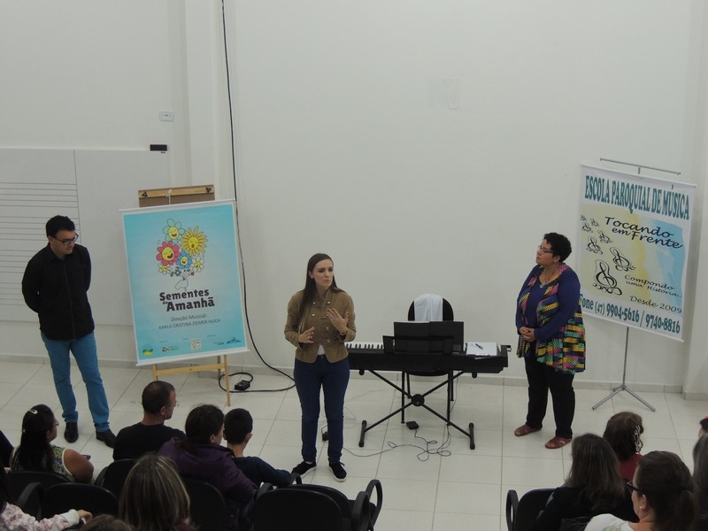 O ensaio do Coral Sementes do Amanhã contou a presença dos pais dos pequenos coristas. Eles foram orientados sobre o funcionamento do grupo. Os reponsáveis por toda a orientação foram o professor Mutti (Helmuth Kirinus), proponente dos projetos que deram origem aos dois corais; Nena (Luci José da Costa Kirinus), coordenadora executiva dos grupos e Karla Ziemer, regente do Coral Sementes do Amanhã e preparadora vocal no Coral Vozes da Babitonga. Por fim, o maestro Rafael Daniel Huch foi o responsável por explica como funcionam as vozes e a importância que elas possuem para o Coral.
