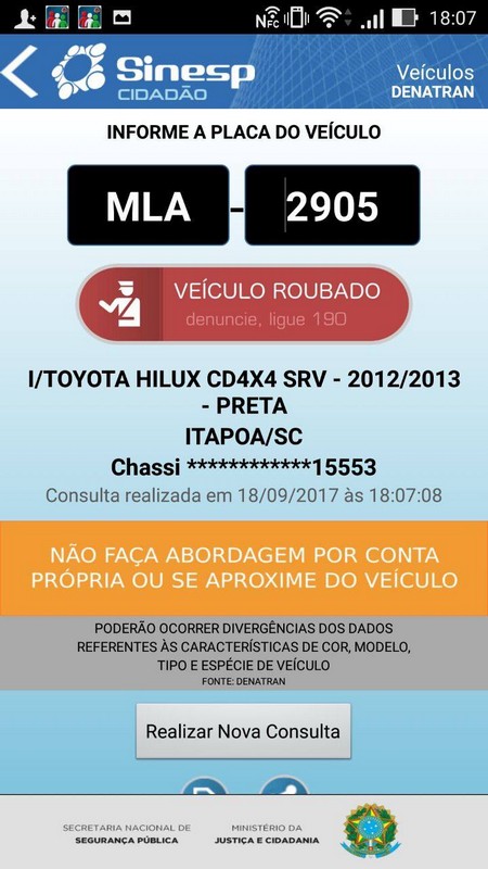 Os assaltantes fugiram levando uma televisão 32 polegadas da marca Philips, um aparelho de DVD da marca Panasonic, um aparelho home theater, um celular da marca Samsung modelo J5 e o automóvel da vítima, uma camionete Toyota Hilux, placa MLA-2905, de Itapoá.