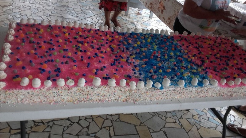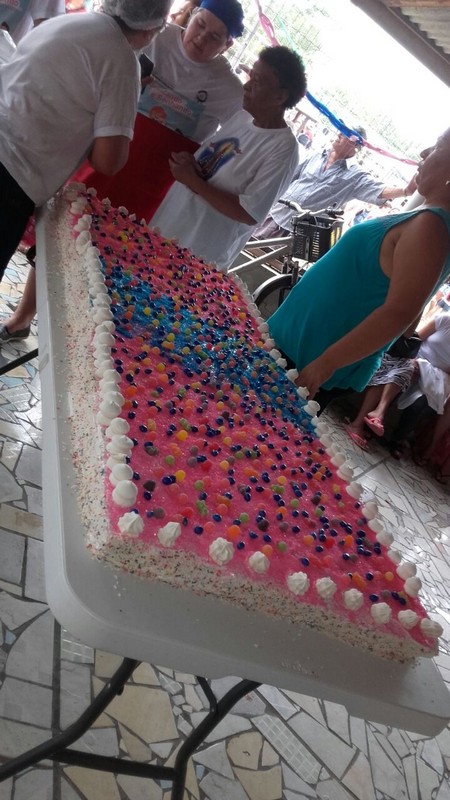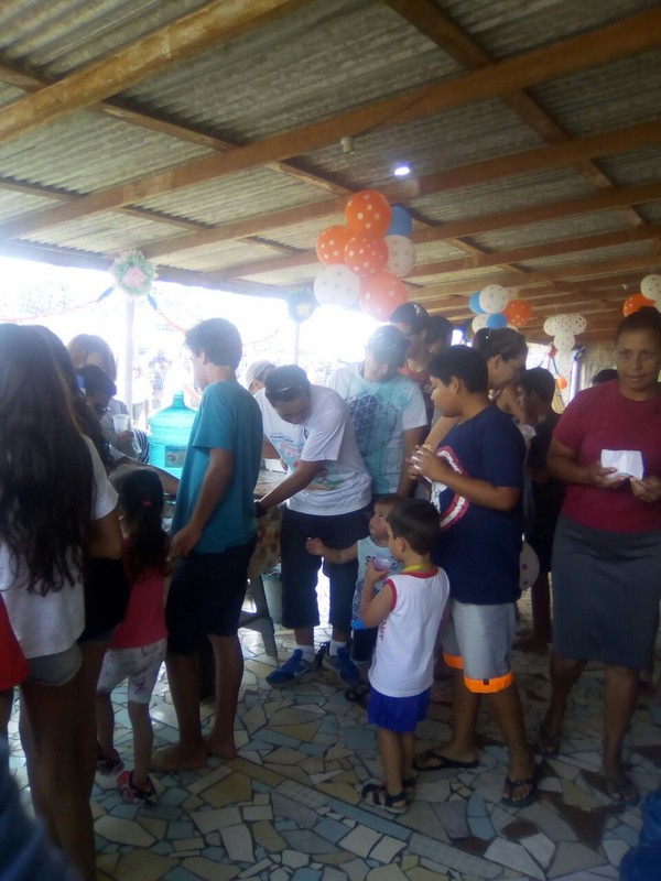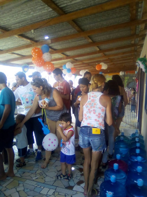 Foram arrecadados e disponibilizados, 1.280 pães, 30 quilos de farinha de trigo para o preparo de mais de 1 mil churros recheados, 26 quilos de milho de pipoca, 50 quilos de salsichas, 30 quilos de molho de tomate pronto, 25 galões de água mineral de 20 litros, 26 quilos de suco em pó, 19 quilos de açúcar para algodão doce, 26 quilos de balas, seis massas de bolo, que resultaram no preparo de um lindo bolo de 30 quilos (medindo 1,80 x 60), 2,7 mil copos descartáveis, 1 fardo de guardanapos e uma surpreendente quantidade de doces, que ultrapassou 6 mil unidades.