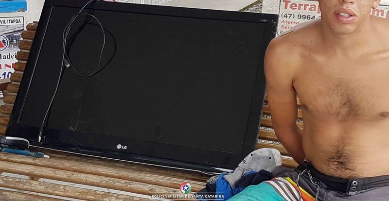 No momento da prisão, ele informou onde abandonou a televisão furtada. Tratava-se de uma TV da marca LG, 42 polegadas. Ele ainda indicou a casa de onde a furtou.