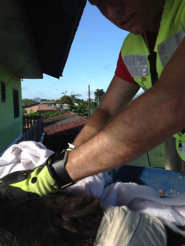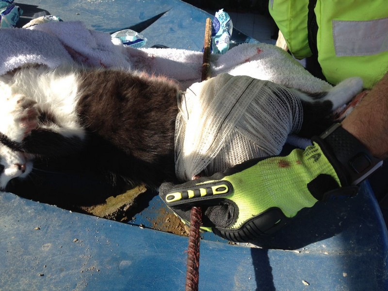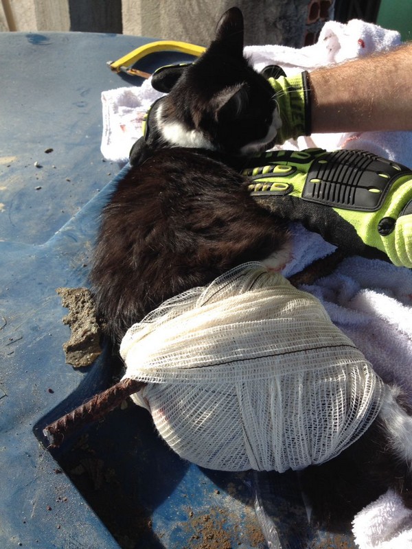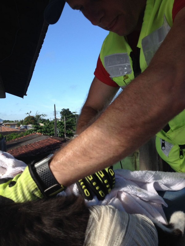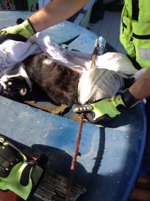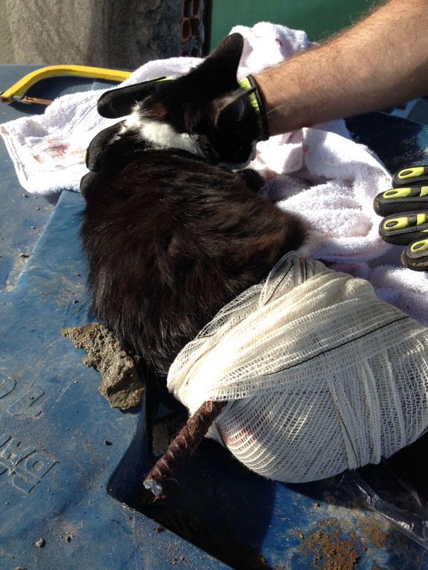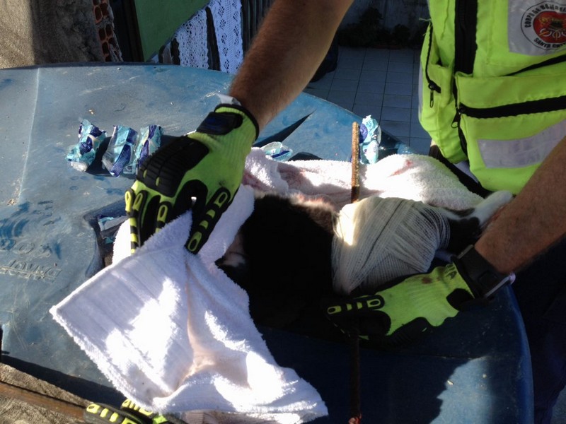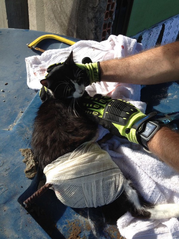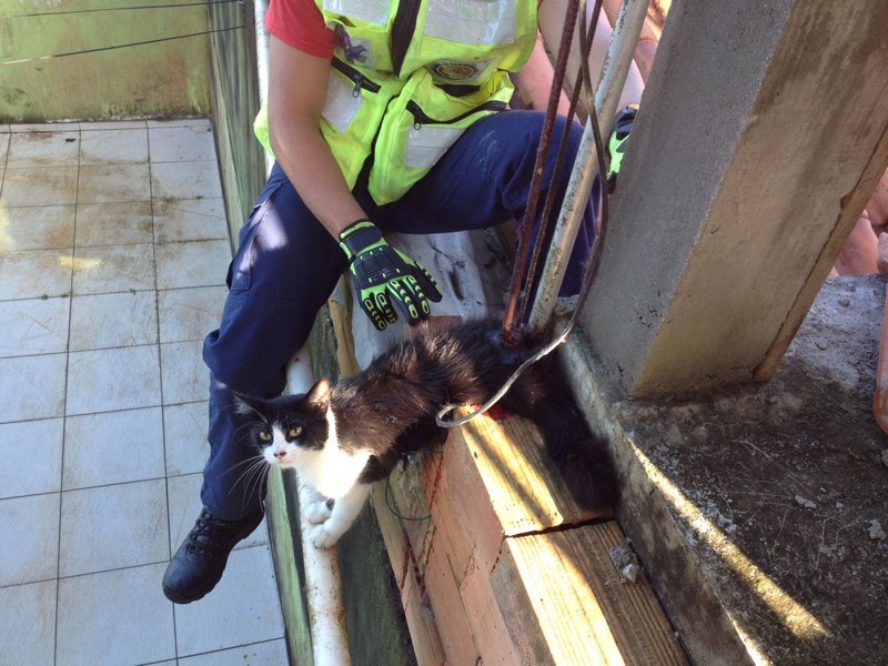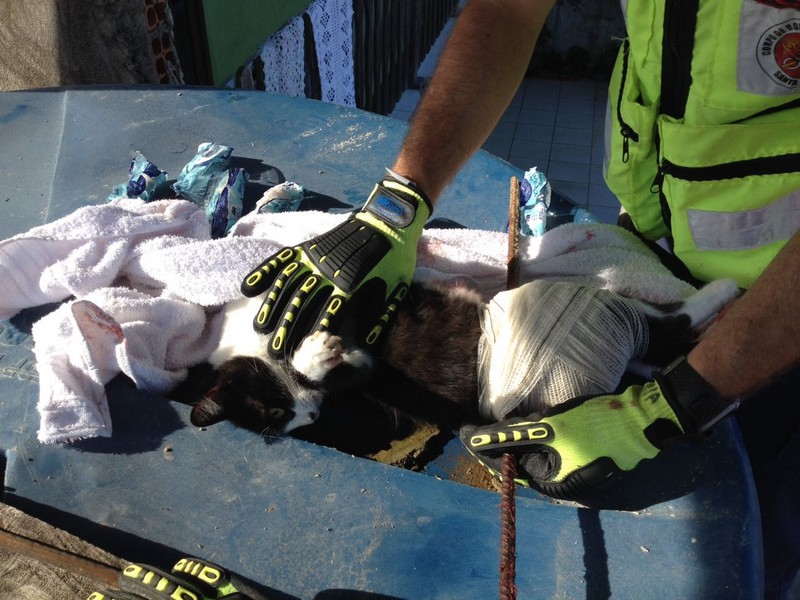 Bombeiros de Itapoá resgatam gata que se acidentou em vergalhão de construção