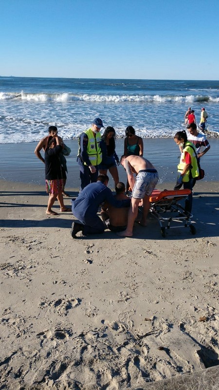 A Tribuna de Itapoá esteve conversando com o guarda-vidas vidas civil Jorge Henrique Basso Canivier, que nos resumiu a ocorrência. “Eu estava passando pelo local de moto e vi a situação. Quando percebi que era um afogamento, pulei da moto e corri pra salvar ele. Dois guardas-vidas (Yann e Gabriel) que estavam surfando já prestavam auxílio com suas prancha. Uma das vítimas conseguiu sair sozinha e a outra eu tive que rebocar até a areia, onde prestei o apoio necessário até a chegada da ambulância”, relatou. Segundo Jorge, duas bombeiras civis que estavam na praia (Sonia e Nardino) também deram suporte à vítima na areia.