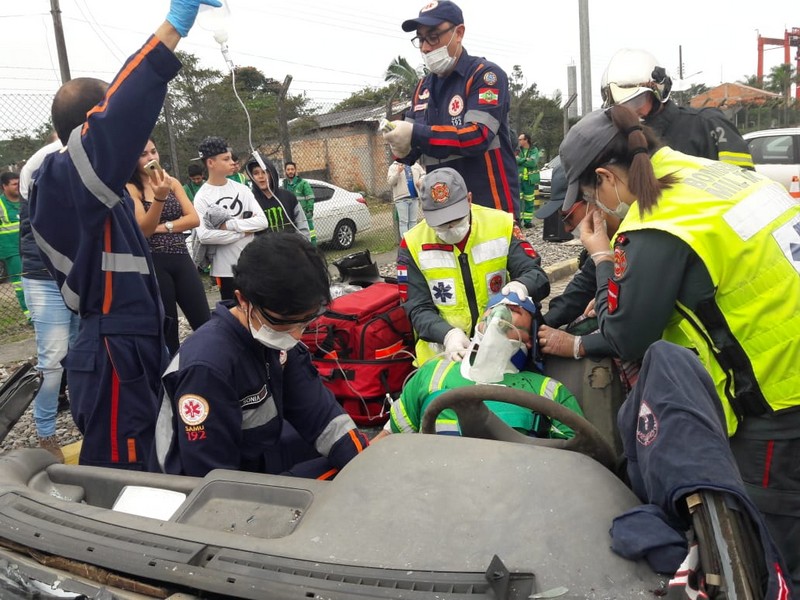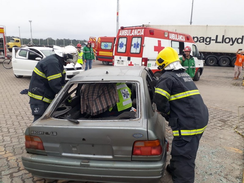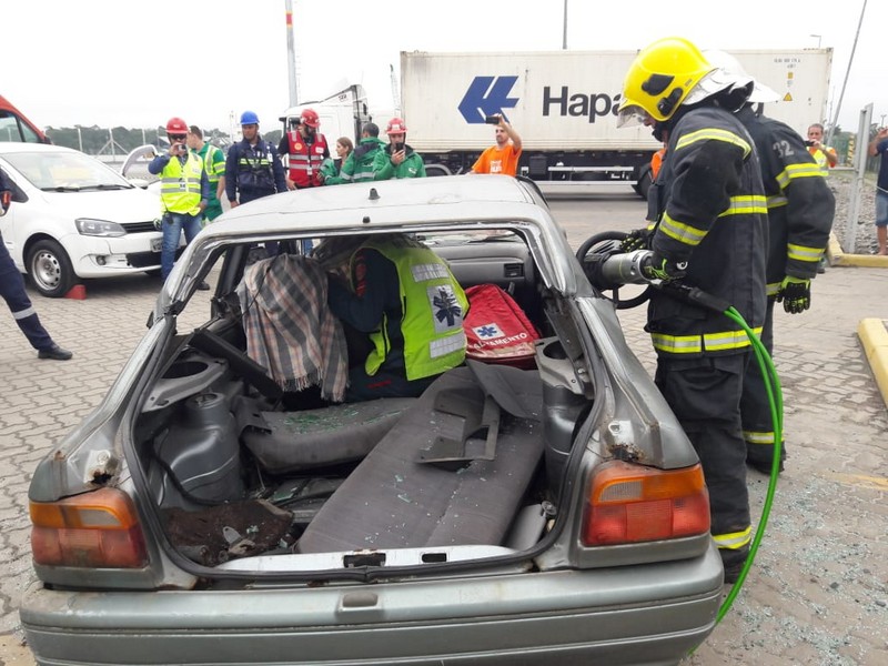 Na tarde desta sexta-feira, dia 27 de julho, o Corpo de Bombeiros Militar, SAMU (Serviço de Atendimento Móvel de Urgência) e uma empresa particular de atendimento pré-hospitalar realizaram um uma ação de resgate simulado de acidente de trânsito no Porto Itapoá.