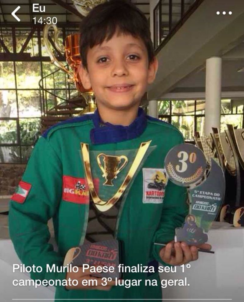 Há menos de um ano, o que seria apenas um presente de Dia das Crianças acabou mudando a rotina do pequeno itapoaense Murilo Anthony Paese, de apenas oito anos de idade. No dia 12 de outubro do ano passado (2017), Aleomar Paese, pai do garoto, o levou para andar de kart em Joinville. O menino gostou tanto que no domingo seguinte já participou de uma das provas de competição, destacando-se com a improvável quinta colocação em sua estreia. O feito rendeu até entrevista para matéria jornalística televisiva de um programa esportivo da RIC TV.