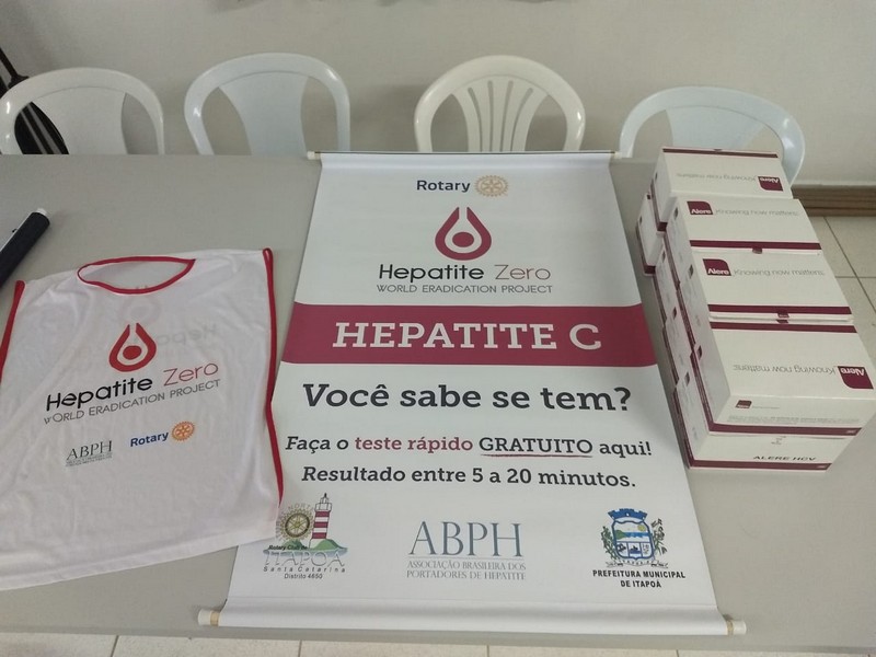 O Rotary internacional está desenvolvendo uma nova campanha mundial de detecção de portadores de Hepatite C , Word Eradication Projec (Hepatite Zero) e junto com com a (ABPH Associação Brasileira Portador de Hepatite) está disponibilizando testes rápidos para a Hepatite C. Através dessa campanha, o Rotary Club de Itapoá recebeu 200 testes, que foram realizados pela Secretaria Municipal de Saúde, por meio da Vigilância Epidemiológica. Na ocasião, as enfermeiras Silvana Ap. Bialesk Rujonowski e Maristela Soares aplicaram os testes detectando três portadores do vírus da Hepatite C, quais foram encaminhados para novos exames e tratamento.