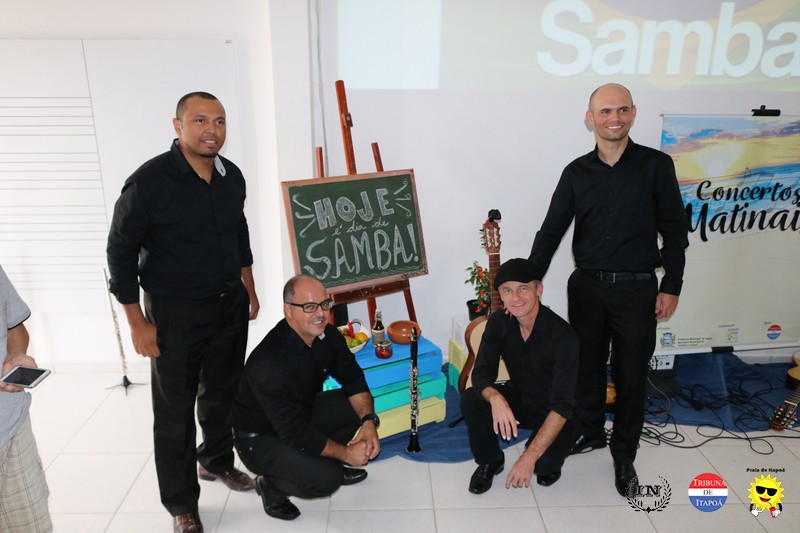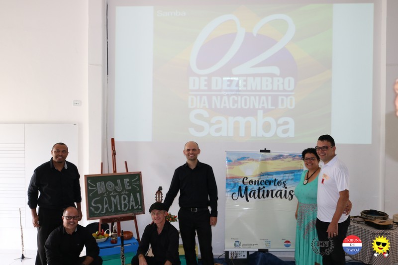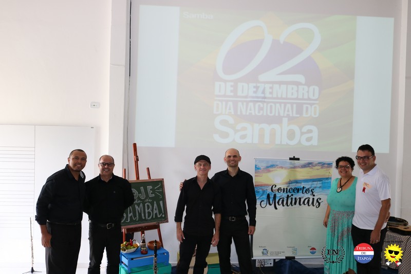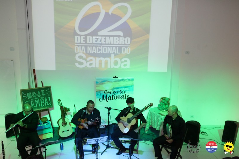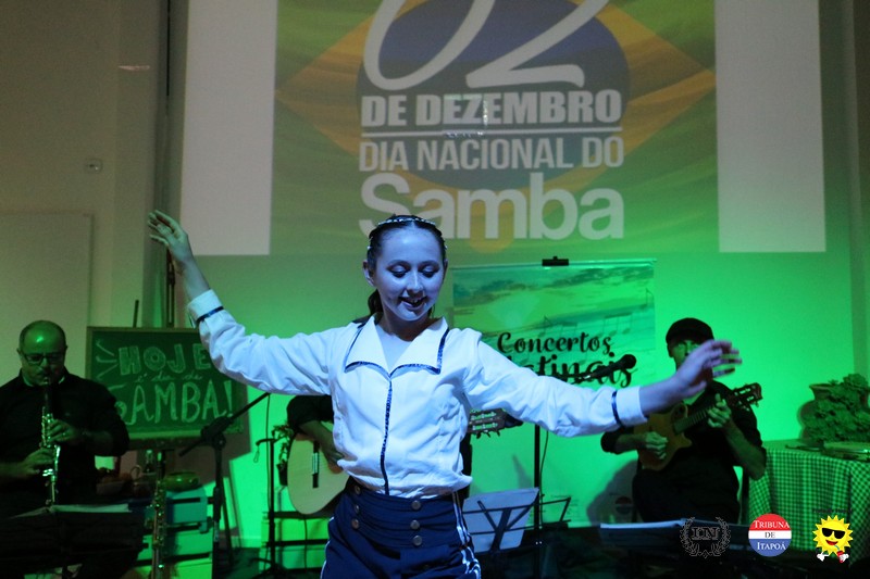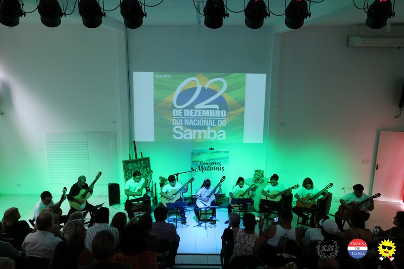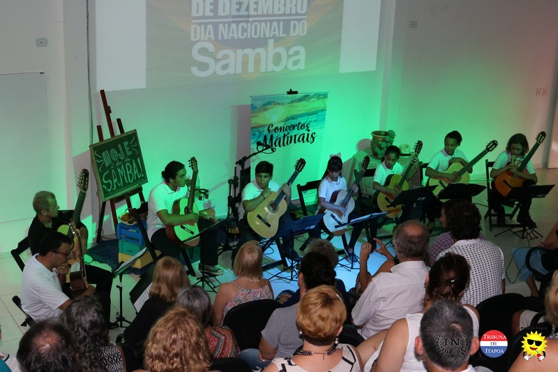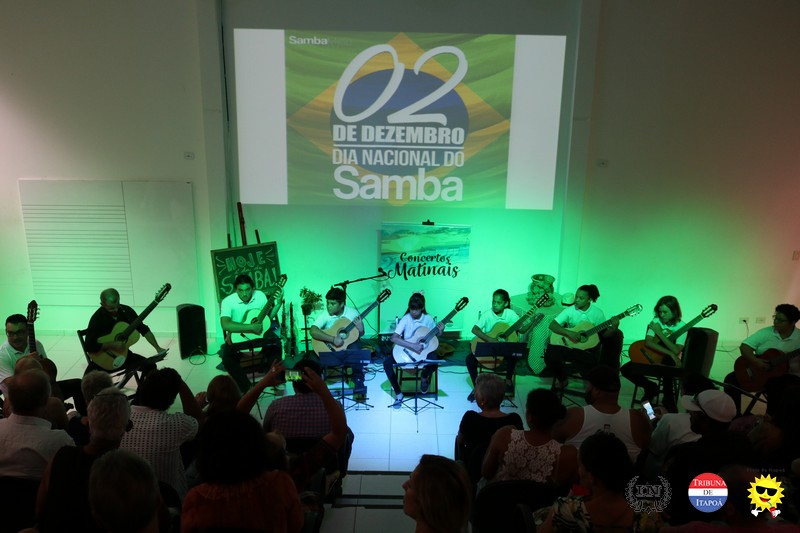 O público fiel aos Concertos Matinais e os demais amantes da música popular brasileira comemoraram o Dia nacional do Samba, na manhã de 02 de dezembro, em grande estilo. Desde a interpretação do Carinhoso de Pixinguinha pela Orquestra Sua Majestade o Violão de Itapoá; passando pela história do samba contada, tocada e cantada pelo regional Mistura Brasileira; e fechando com chave de ouro com a coreografia do Brasileirinho pela aluna e dançarina Ana Julia, da Coan studio de Dança e Pilates, coreografada pelo professor Luiz Carlos Santos; todos presenciaram um belíssimo espetáculo.