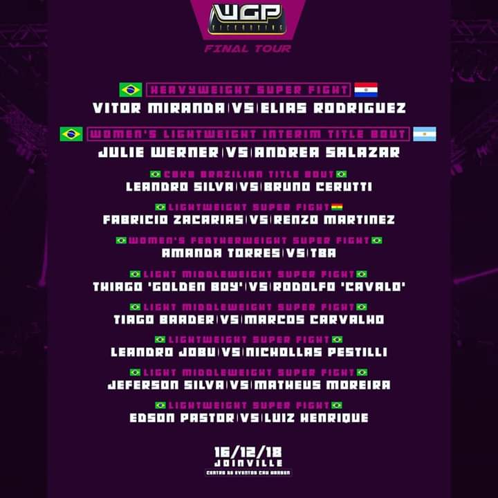Considerado o maior evento de trocação da América latina, o WGP é chancelado pela Confederação Brasileira de Kick Boxing. Trata-se de uma competição cuja participação é muito almejada por lutadores brasileiros. Por esse motivo, um lutador itapoense está muito feliz com a oportunidade que recebeu de lutar nessa importante competição. Trata-se de Edison Pastor, que enfrentará Luiz Henrique de Praia de Leste, Pontal do Paraná (PR). O evento ocorre na tarde deste domingo, dia 16 de dezembro, a partir das 15h30, em Joinville, no Centro de Eventos Carl Hansen, com transmissão ao vivo em alguns canais fechados de televisão.