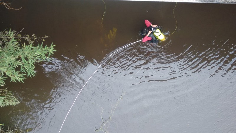 Por volta das 10h da manhã, quando foi possível reunir todo o equipamento e pessoal necessário, foram iniciadas as buscas com os mergulhadores que, em poucos minutos, encontraram o automóvel submerso, ainda com os vidros fechados, o que impossibilitava a averiguação de vítimas. Dentro da água.