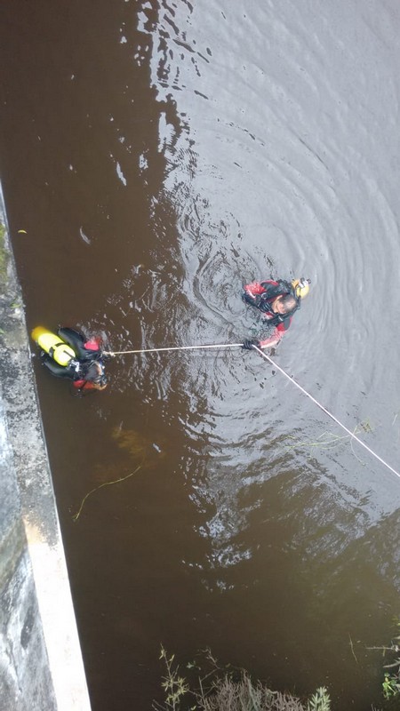 Considerando todos os sinais e vestígios encontrados na cena, a equipe de mergulho do Corpo de Bombeiros Militar de Itapoá foi acionada. Ela contou com o apoio da PM, Polícia Civil, serviço de guincho e IGP (Instituto Geral de Perícias).