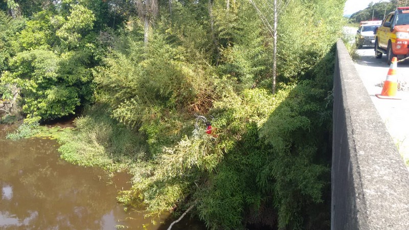 Por volta das 06h da manhã deste domingo, dia 31 de março, o Corpo de Bombeiros Militar de Itapoá foi acionado pela Polícia Militar local para o atendimento de uma possível saída de pista na Estrada Cornelsen, próximo à ponte sobre o rio Saí Mirim.