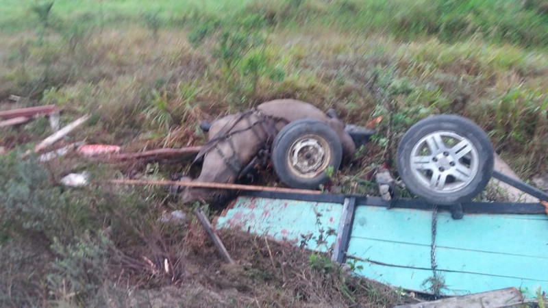 Cavalo morre e carroceiro fica ferido em acidente com caminhão