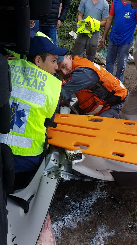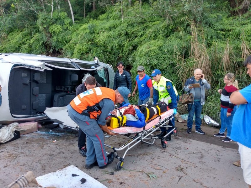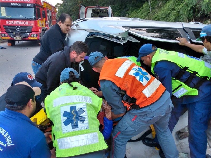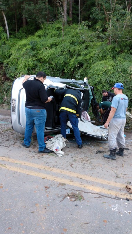 Por volta das 12h50min, o Corpo de Bombeiros Militar de Itapoá voltou a ser acionado para atendimento a acidente de trânsito na Rodovia SC-416, desta vez um capotamento. Chegando no local, os bombeiros se depararam com um veículo tombado com a lateral ao chão e populares que já prestavam apoio às vítimas. Havia duas vítimas: um homem e uma mulher. Ele, com 56 anos de idade, estava em pé, consciente, orientado e, aparentemente, sem ferimentos. Ela, uma idosa de 90 anos de idade, se encontrava no banco do passageiro, de lado, com a cabeça para baixo, ainda sim consciente e orientada, mas queixando-se de dor no pescoço (cervical) e nas costas. Assim que conseguiram estabilizar a posição do automóvel (sobre o qual não foi informado detalhes) com calços e o guincho da própria viatura do Corpo de Bombeiros, os resgatistas cortaram as colunas do veículo para terem acesso a vítima, que estava presa às ferragens. A cervical da idosa foi imobilizada e ela colocada na maca rígida. Após as avaliações, tanto ela quanto o homem aparentemente sem ferimentos foram encaminhados ao PA 24 Horas de Itapoá.
