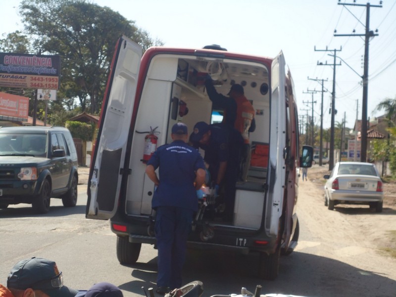 Enquanto ocorria o deslocamento, os bombeiros da viatura administrativa já prestavam o primeiro atendimento às duas vítimas. A primeira delas, uma mulher, que era a garupa da moto e estava deitada com a barriga para cima, consciente e orientada, porém com os sinais vitais instáveis. Após avalia-la, foi constatada a suspeita de uma fratura no punho, além de escoriações na face e nos dois braços. Ela também alegava dores na região das coxas. A mulher foi imobilizada em maca rígida com o uso de colar cervical e também foram imobilizados seus dois punhos. A outra vítima, o homem que conduzia a moto, também estava consciente, orientado e com os sinais vitais instáveis. Ele apresentava escoriações na face e nas duas pernas. Feita a avaliação, ele foi imobilizado em maca rígida com colar cervical. Home e mulher foram conduzidos até o PA (Pronto Atendimento) 24 Horas de Itapoá para o atendimento definitivo.