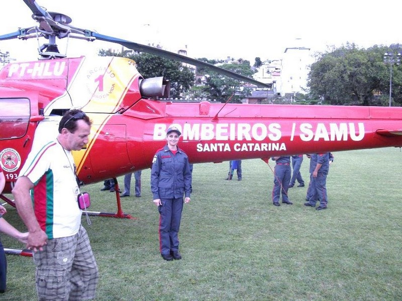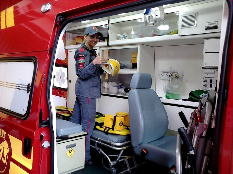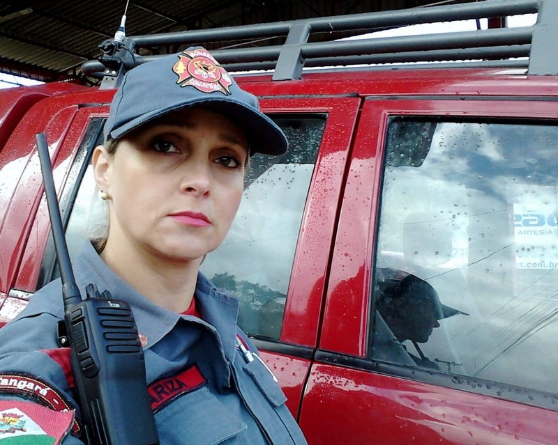 Mariza de Fátima Ozório também é bombeira comunitária em Itapoá atualmente. Ela conta que cursava faculdade de Enfermagem e decidiu buscar mais conhecimento, quando se apaixonou pelo trabalho pré-hospitalar. Atualmente, Mariza trabalha na Unidade de Pronto Atendimento de Garuva e no SAMU (Serviço de Atendimento Móvel de Urgência) de Joinville, sobrando pouco tempo para a atividade comunitária, mas sempre que ela pode, vai para o quartel. Moradora de Garuva devido a seu trabalho, ela também atua como bombeira comunitária desde 2011, quando fez o curso no município de Fraiburgo. Depois, foi aprovada em um concurso para BCP (Bombeiro Comunitário Pago) na cidade vizinha de Tangará, onde trabalhou por um ano e cinco meses em escala semelhante à dos militares, ou seja, de 24 por 48 horas. Além dessa escala no trabalho remunerado, ela não deixou de prestar o serviço de bombeira comunitária em Fraiburgo nos dias de folga. Em 2014, veio morar em Itapoá e logo começou a prestar serviço no Município também, o que faz até hoje. “Eu amo prestar serviço voluntário e isso também me ajudou muito para o crescimento em minha profissão. Como tenho pouco tempo, faço quando consigo folga. Atendo muitas ocorrências diariamente com ambulância avançada e o Águia, quando necessário”, conta ela.