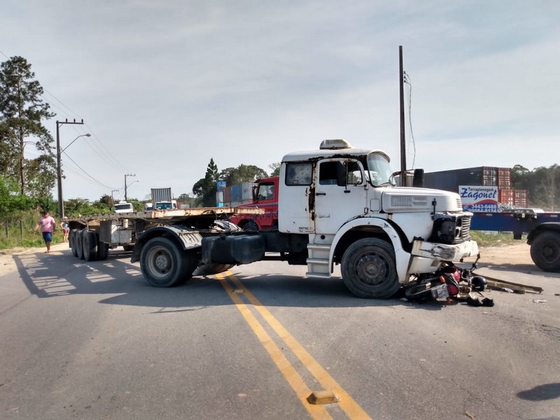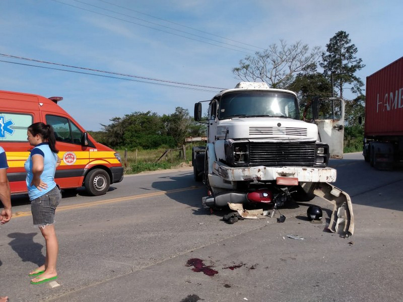 Por volta das 16h desta terça-feira, dia 29 de outubro, o Corpo de Bombeiros Militar de Itapoá foi acionado para atender uma ocorrência de colisão frontal envolvendo uma motocicleta Honda CG 125 com placas de Itapoá e um caminhão Mercedes Benz com placas de Cascavel (PR) envolvendo uma vítima.