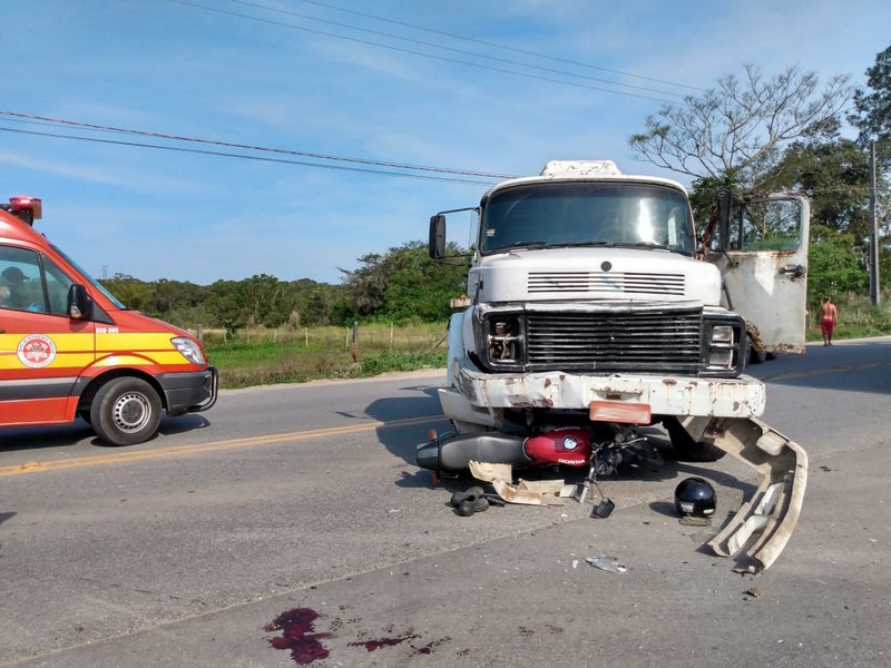 Acidente de trânsito entre motocicleta e caminhão na Estrada José Alves deixa um ferido