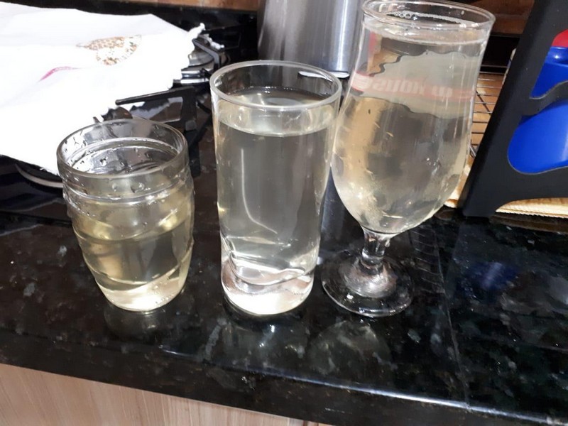 Veja as fotos e vídeos que demonstram a coloração da água que está chegando a muitas das torneiras dos imóveis de Itapoá.