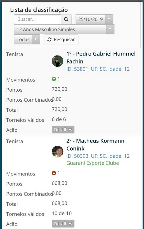 Prestes a completar 12 anos de idade (no próximo dia 25 de dezembro) Pedro Gabriel Hummel Fachin segue se destacando nas competições mirins de tênis. Representando Itapoá, tem conseguindo resultados expressivos nas competições e recentemente assumiu a liderança do ranking estadual de Santa Catarina para atletas de até 12 anos de idade.