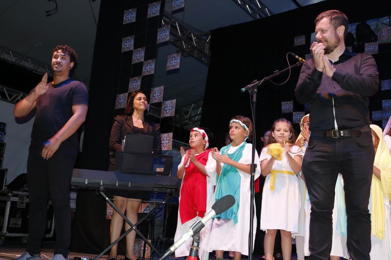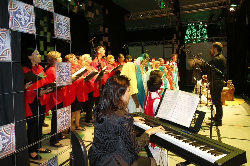 Na noite dessa sexta-feira, dia 13 de dezembro, o palco do projeto “Um Toque de Natal” da Prefeitura de Itapoá, recebeu, entre outras atrações da programação, o musical (música e teatro no mesmo espetáculo) “Natal Brasileiro”, dos corais Sementes do Amanhã e Vozes da Babitonga. Foi a segunda apresentação do espetáculo, que conta com atores profissionais, cenário, direção de cena entre outros elementos que o tornam imperdível. Além disso, na parte musical, uma equipe de músicos invejável e arranjos com ritmos bem brasileiros como ciranda, samba e baião. O enredo do Musical mostra a história do menino Jesus como se ele tivesse nascido no Brasil e faz uma viagem por alguns estados brasileiros, referenciando ritmos musicais e aspectos culturais de todas as regiões do País. E para todos os momentos, há a interpretação em libras também realizada por profissional gabaritado.