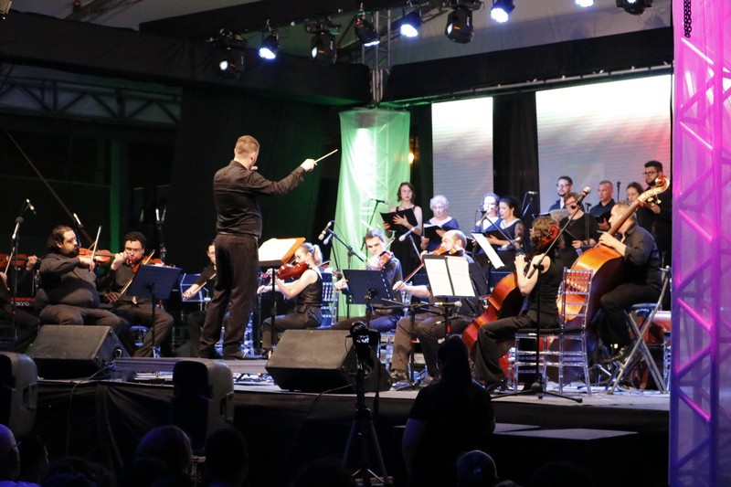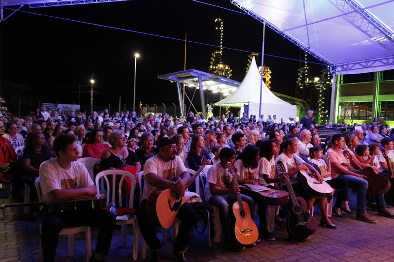 “Surpreendente” é uma palavra que resume bem o que foi a primeira parte da 5ª Noite Cultural no Porto Itapoá, realizado nessa sexta-feira, dia 20 de dezembro. Intitulado “Natal Brasileiro”, o evento, que terá sua continuidade a partir das 20 horas deste sábado, dia 21 de dezembro, contou com apresentações musicais memoráveis. O público, que compareceu em grande número ao estacionamento do Porto Itapoá, recebeu as boas vindas de Cassio Schreiner, presidente do Terminal Portuário, e prestigiou a Orquestra Prelúdio, o coro Vox Camerata e a Orquestra do Instituto Coree, os três grupos de Joinville, além dos itapoaenses projeto “Violão para Todos”, “Orquestra Sua Majestade, o Violão”, Coral Vozes da Babitonga e Coral Sementes do Amanhã.