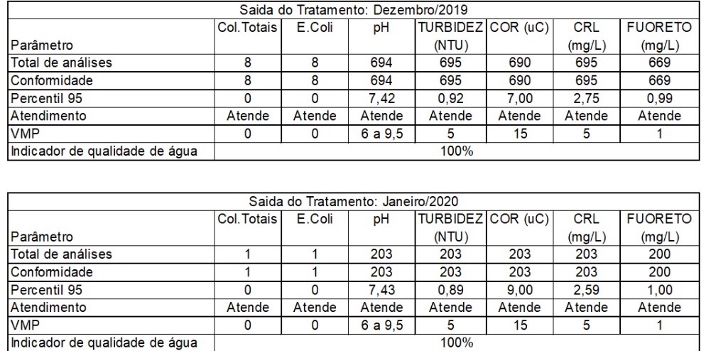 Em nota, a Itapoá Saneamento Ltda., concessionária responsável pelo fornecimento de água no Município de Itapoá, apresentou o resultado de análise por amostragem em relação à qualidade do produto fornecido durante todo o mês de dezembro de 2019 e nos primeiros dias de janeiro de 2020. O relatório integra o Plano Anual de Amostragem da Qualidade da Água. Confira: