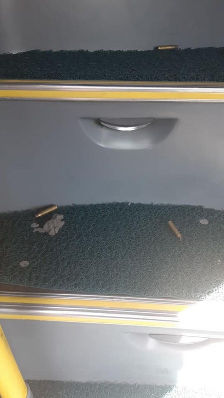 Visando forçar a parada do ônibus, os assaltantes dispararam uma rajada de fuzil ao lado do veículo e em seguida, entraram no coletivo, roubando o dinheiro de todos os passageiros.