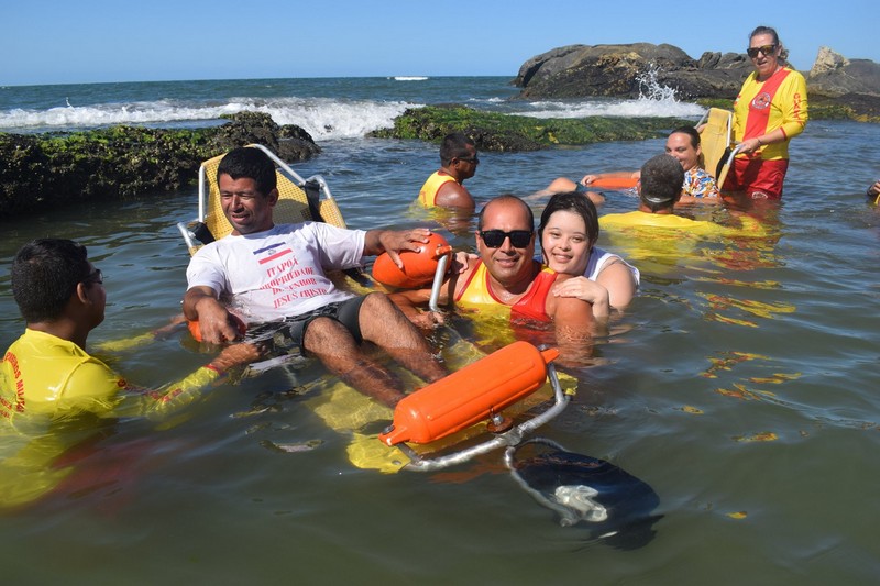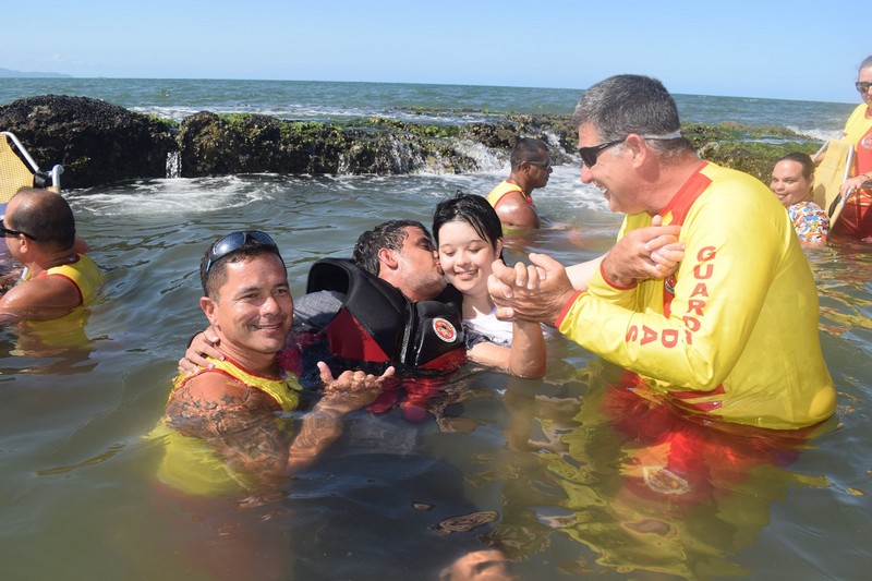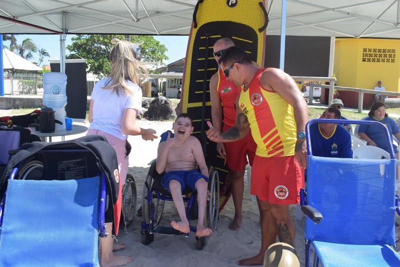 Desta vez, a ação ficou marcada pelo sentimento de alegria dos alunos da APAE (Associação dos Pais e Amigos dos Excepcionais) de Garuva e de Itapoá que entraram no mar com o auxílio das cadeiras anfíbias e dos pranchões disponibilizados.