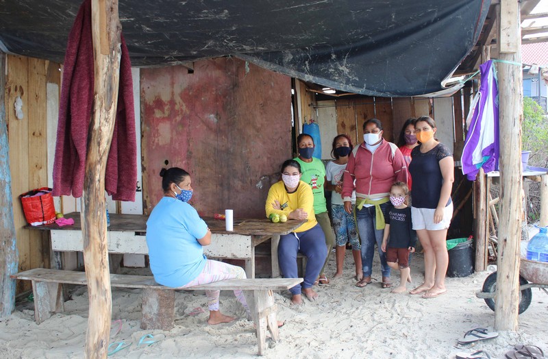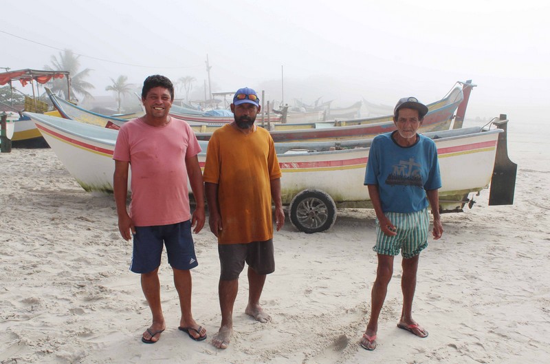 Além de Kalanga, há cerca de 20 profissionais da pesca, entre pescadores e pescadoras. Juntos, eles seguem até o anoitecer: entre uma olhada e outra para o mar, entre um lance e outro da rede, é na praia que passam o dia inteiro.