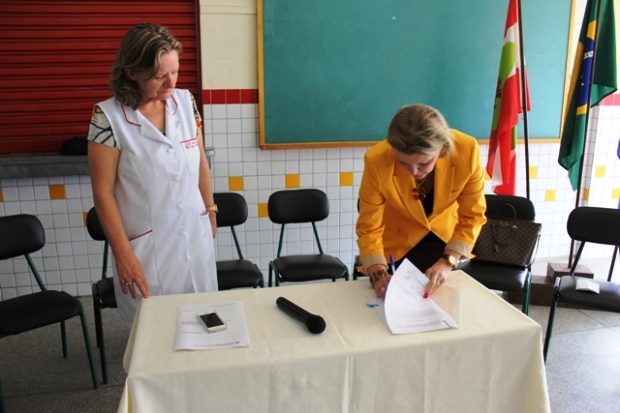 No ato de assinatura, Simone Schramm, secretária regional, entregou à APP (Associação de Pais e Professores) e à direção, cópia do memorial descritivo das obras. “A comunidade poderá contribuir conosco, sendo o agente fiscalizador do andamento dos serviços”, destacou ela.