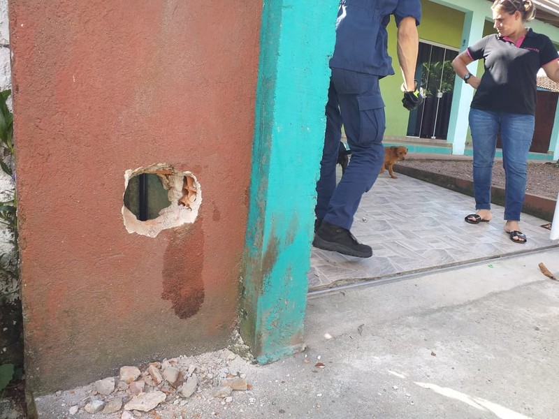 Os bombeiros precisaram abrir um pequeno acesso no local onde o cachorro havia colocado a cabeça e, assim, conseguiram realizar o resgate sem ferimentos ao animal, que ficou aos cuidados de seu tutor.