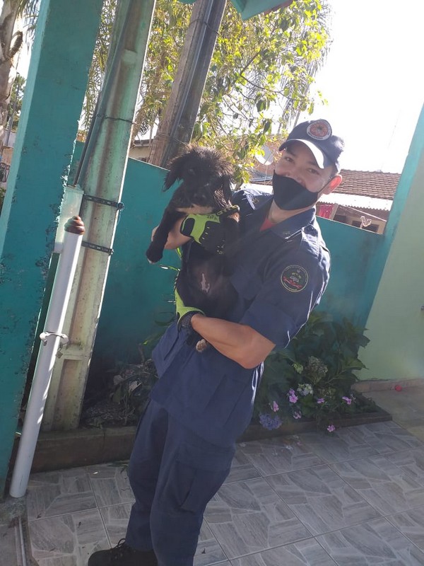Por volta das 16h30 desta sexta-feira, dia 20 de novembro, o Corpo de Bombeiros Militar de Itapoá foi acionado pela Central 193 para que atendessem uma ocorrência que envolvia a retirada de um cachorro de uma tubulação em uma residência do bairro Samambaial.