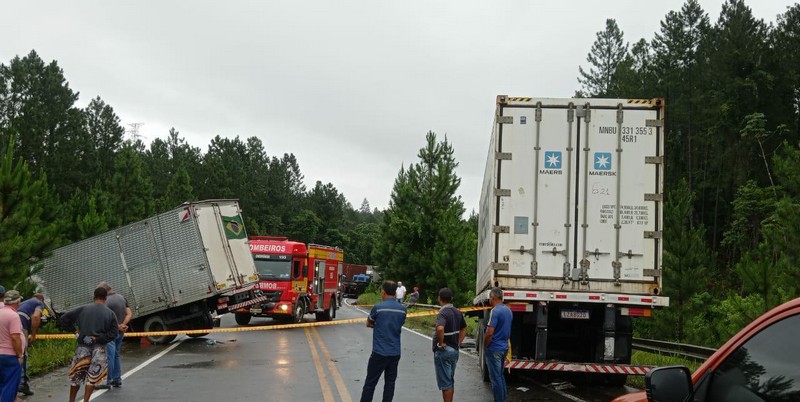Grave acidente entre caminhões resulta em um óbito