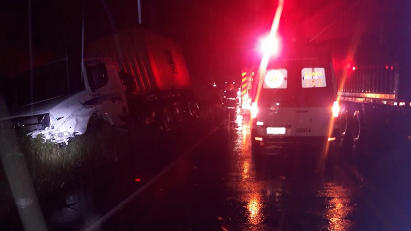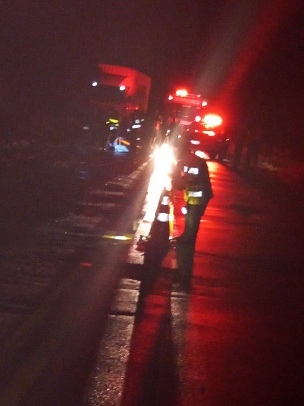 No local, as equipes de socorro constataram se tratar de uma colisão frontal envolvendo dois caminhões e um automóvel de passeio, sendo este um Fiat Siena branco, cujo condutor, um homem de 68 anos de idade, estava caído na rodovia, deitado na rodovia. Após a avaliação geral do paciente, foi constatado o óbito com a ausência total de sinais vitais.