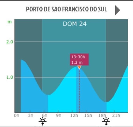Diferente das outras praias, que o perigo maior são as correntes de retorno, nessa praia, o perigo é a corrente de descarga. A alta pressão atmosférica provoca o abaixamento do nível das águas, a baixa pressão tem efeito contrário. Tanto uma como outra provocam uma diferença de nível das águas e a consequente formação de correntes. As correntes originadas pelas diferenças de nível denominam-se correntes de descarga. Abaixo é apresentado o horário da variação da maré neste domingo (24/01).