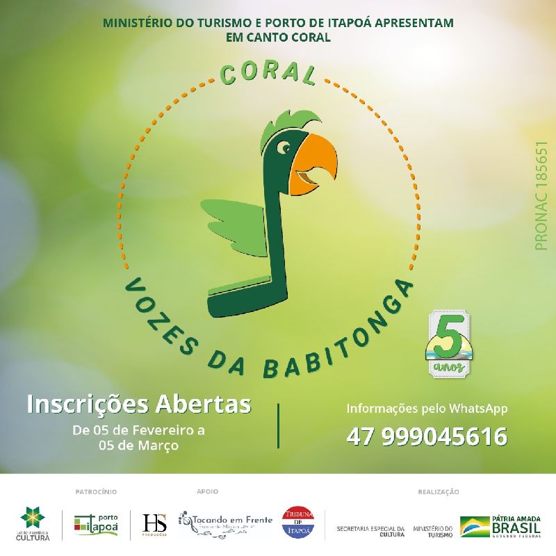 As inscrições para todas essas modalidades de formação artística continuada ocorrem até o próximo dia 5 de março pelo telefone / WhatsApp (47) 99904-5616.