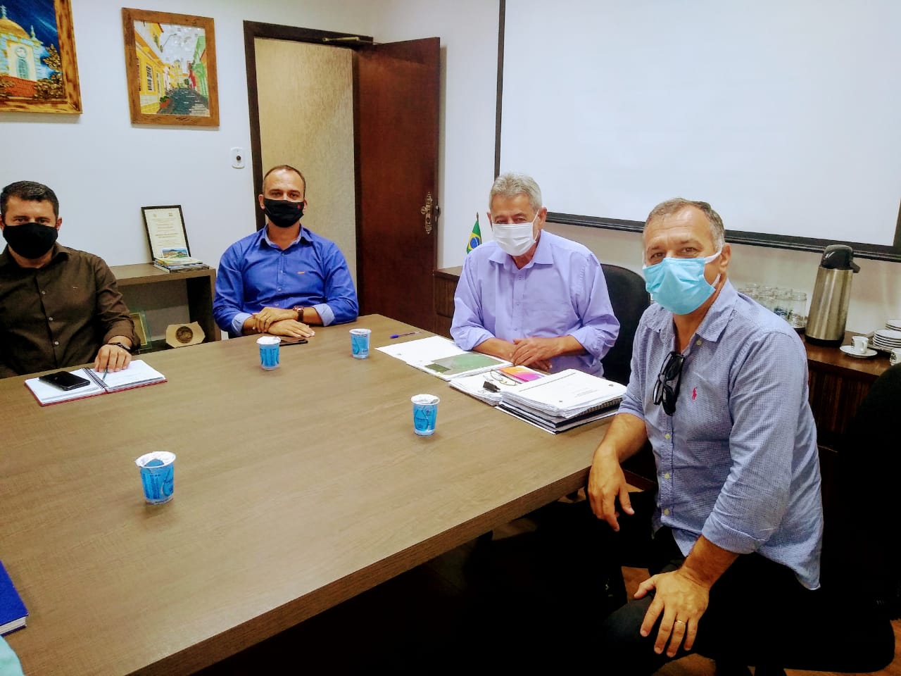 Na manhã dessa sexta-feira, dia 26 de fevereiro, o vice-prefeito Jeferson Rubens Garcia e o secretário municipal de Agricultura e Pesca de Itapoá, Edson Cunha Speck, estiveram reunidos com o prefeito de São Francisco do Sul, Godofredo Gomes Moreira Filho, e a equipe dele, para tratar da retomada das obras de pavimentação da via que liga São Francisco do Sul a Itapoá, pertencente ao projeto Costa do Encanto.